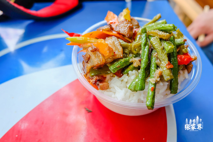 由于前一天起得早睡得晚,导致我俩今天早上实在起不来,一觉睡到10点多,还好今天只有一个 天门山景区,不算太赶,所以只好早中饭混合在一起了,在纬地酒店的楼下就有很多小饭馆,我们随便找了一家炒了几个小菜吃,值得一提的是来 张家界 旅游,腊肉是一定要品尝哦,真的味道很不错。