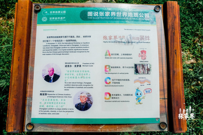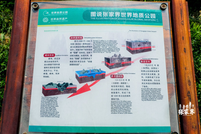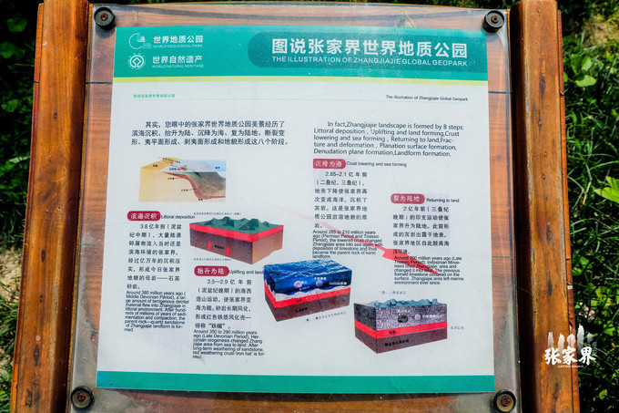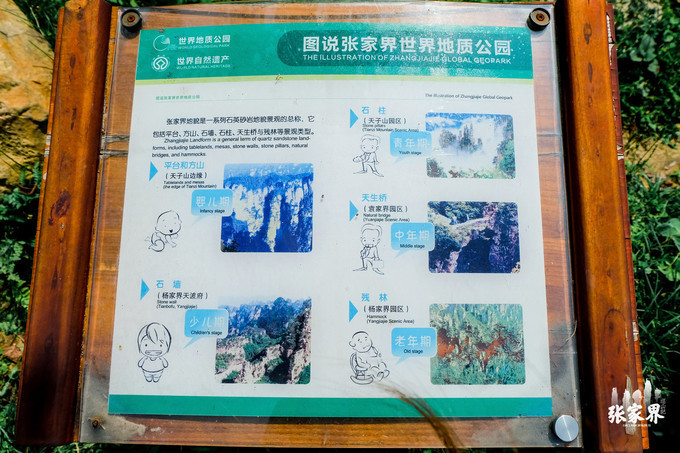 从这里需要乘坐去百龙天梯,等车的时候我们看到了一些关于 张家界 地质公园的一些图文说明,