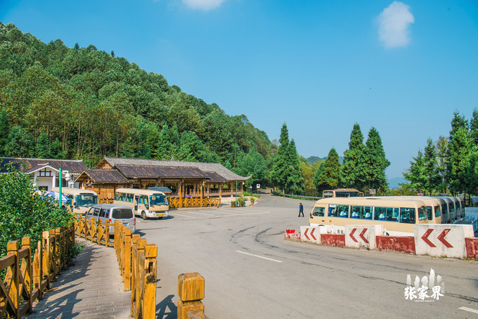 张家界天门山景区大概先坐中把小车十几分钟就从刚刚的市区到达了景区,在这边检票后需要再乘坐景区里的大巴上山。
