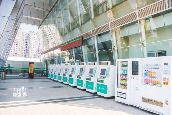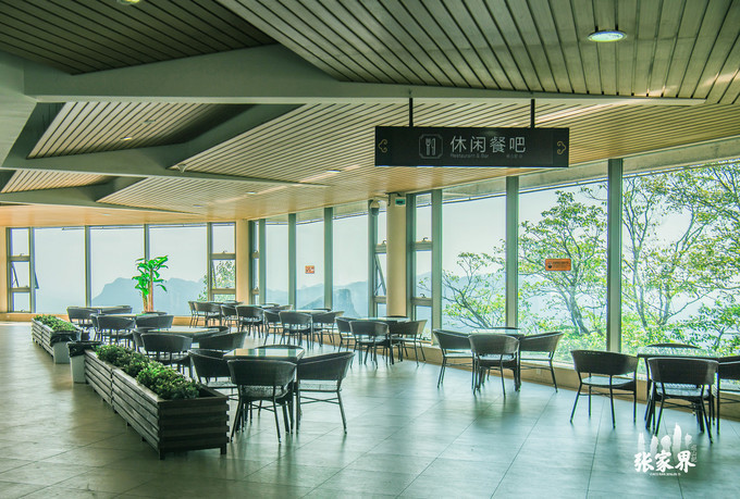 张家界天门山景区天门山索道从山顶坐电梯直达坐索道的地方,这里已经被打造成很完善的旅游景点,休闲餐吧、还有自助零食饮料贩卖机,非常方便。看时间还早,因为我们西线都没去,所以我们再去走一走。