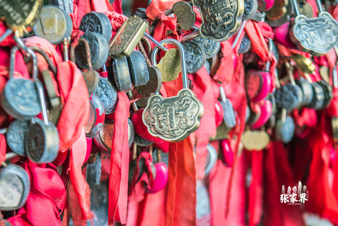 天门洞山洞脚上也有很多祈福的同心锁和红飘带,当你爬上了999阶天梯,也就可以许下你的愿望,用你虔诚的心去祈祷,更容易美梦成真。
