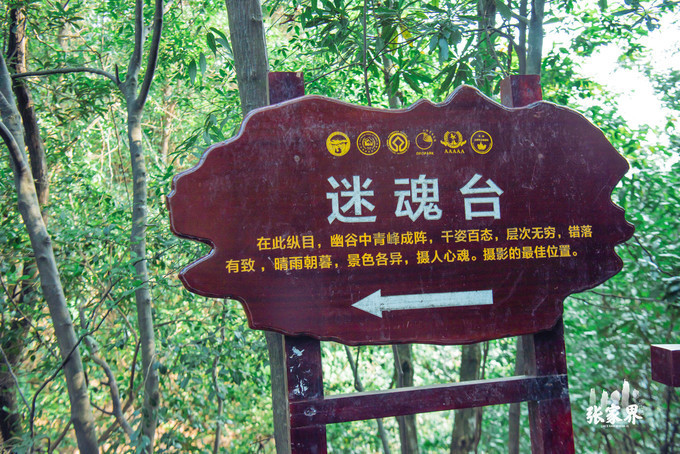 袁家界袁家界袁家界袁家界袁家界由袁家界东行约800米,有一小路蜿蜒南伸至兀岩顶平台。置身平台左右环顾、万千景象尽收眼底。一座座岩峰 石柱 如桌、如椅、如楼、发阁、其形态奇异、妙不堪言。每当雨后初睛,时有轻云淡雾于群峰间飘浮、缭绕、但见山移峰潜,好似琼楼玉阁,时隐时现。游人至此,个个神魂痴迷,不知居何处,故有迷魂台之誉。