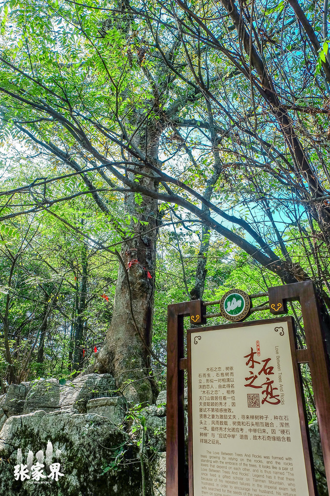 张家界天门山景区张家界天门山景区木石之恋,好美的名字,这是路上的一个小景点,一颗从大石块中冒出的参天 大树 ,非常壮观。