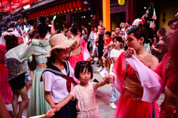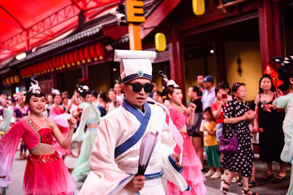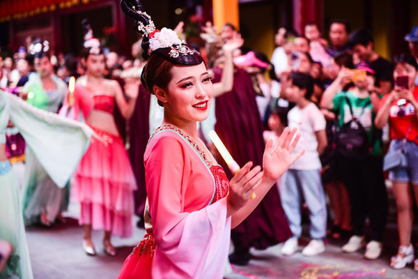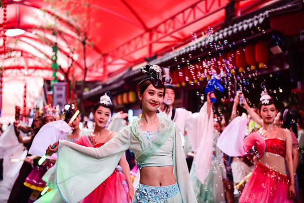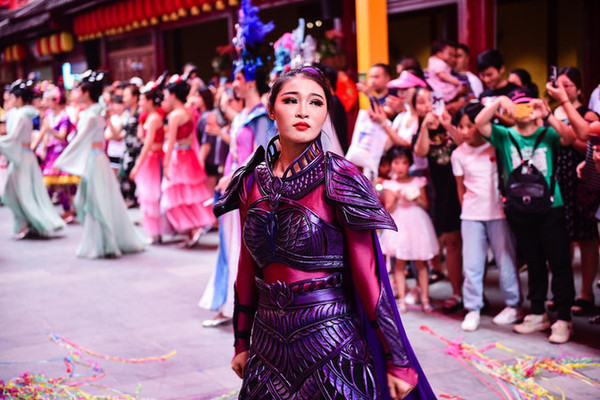 穿着各色服饰的妆容精致的演员们随着音乐舞动,还加入了不少现代元素,演员们都面带微笑,沿街热情地邀请游人们加入他们的欢动中分享快乐。