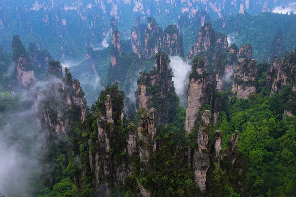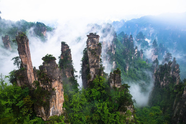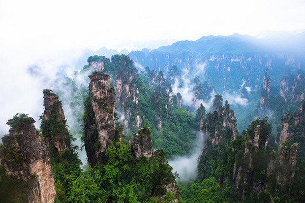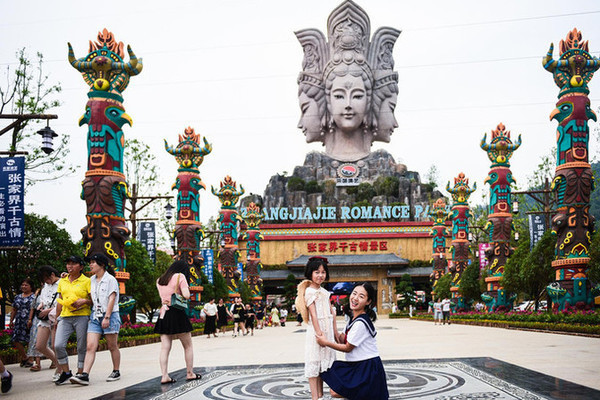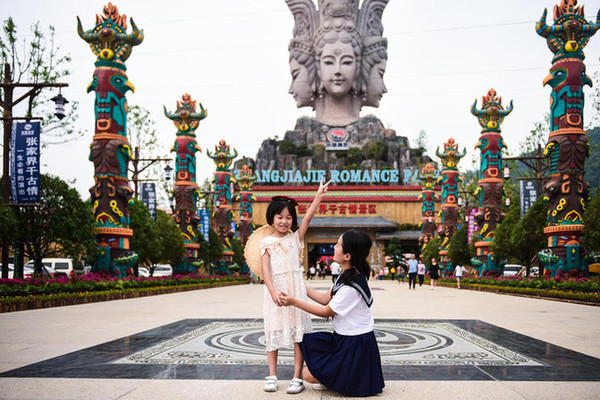 进入 武陵源 景区腹地,我们当然不能错过的是电影《阿凡达》的取景地——袁家界 ,电影里的悬 浮山“哈利路亚山”原型就是袁家界著名的乾坤柱。