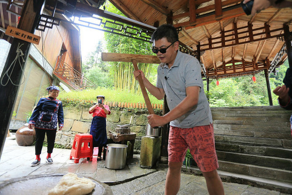 镐起木锤打糍粑,