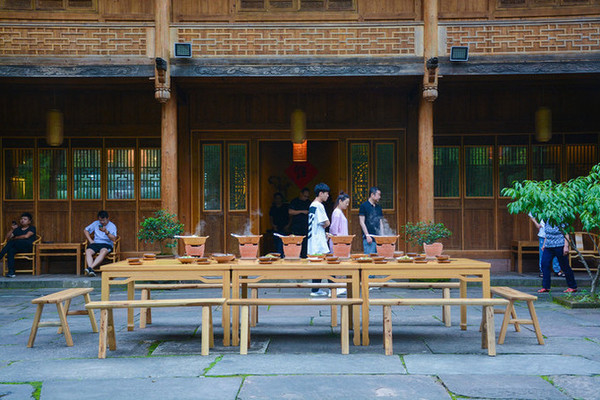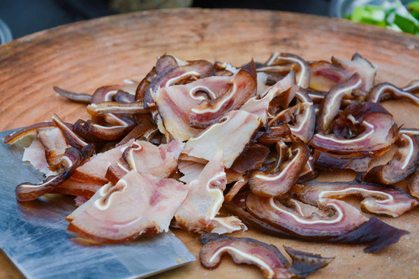餐桌上肉质鲜嫩的鸡肉是院里的走地鸡,切的极薄的晶莹剔透腊肉火腿是年节是农家自己腌制的。还体验了农家自己做糍粑和豆腐的过程。