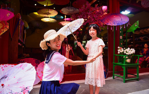 还在街边贩卖的特色物品,如各色各样的油纸伞、小雕像、木制小玩具、风车旁一直徘徊流连。