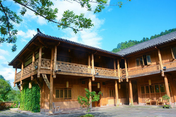 背靠绿林山丘,前倚流水的幽然所在,几幢二层木制青瓦小楼临水自照。半面墙上爬满了爬山虎,风去簌簌作响。