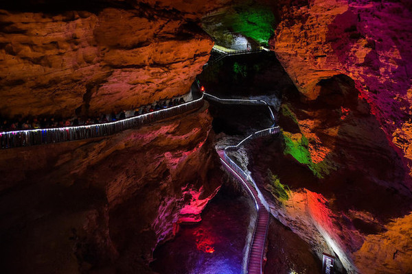 高阔洞天、幽深的暗河、密集的石笋而出名。