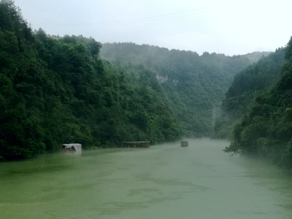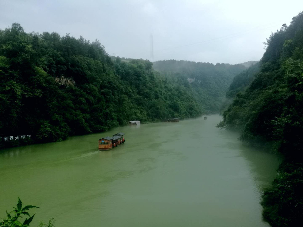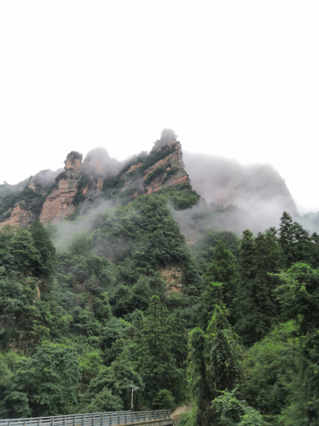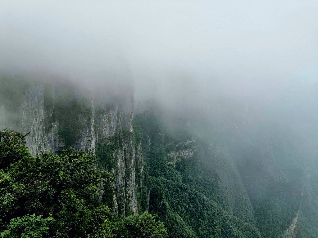 在雾中穿行了半天,太阳一直和我们捉迷藏,拨开云雾偶尔看到点蓝天!从早上7点半一直走到下午2点半,排队等下山的大索道,然而,我们又经历了雨中索道,瓢泼的大雨一股脑的下下来,然而车厢的地面是透明的而且是镂空的,这样下雨车厢也不会闷。就这样第一天天门山游画上了句号,天门山算是走了个遍,我们从西线走到东线,整个环一圈,脚力确实有点跟不上啦!