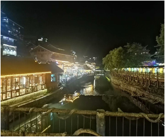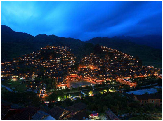 夜幕降临,品尝苗家美食、美酒,听着芦笙悠扬的音乐,沿着盘山小路,清风拂面,登高而望,上千座苗寨特色吊脚楼从山上一直蔓延到山脚,就如同一颗颗闪亮的红宝石镶嵌在这青山绿水之间,美不胜收。这一刻如同隔世,什么烦恼、什么忧愁,随风飘走、随水流去,这才是仗剑走天涯的气魄和胸襟所在呀!