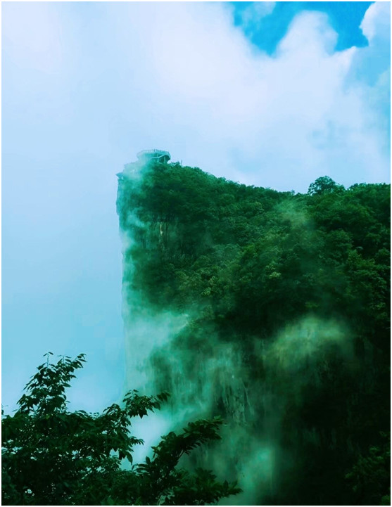 烟雾升腾、若隐若现的翼装飞行跳台,极限运行的天堂。2011年9月24日,世界最顶尖的翼装飞行高手杰布・科里斯身穿翼装穿越天门洞挑战极限。