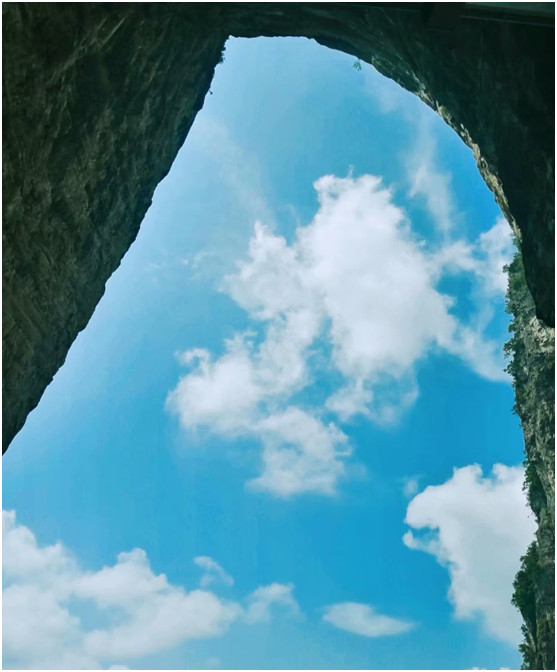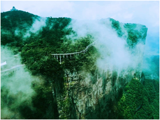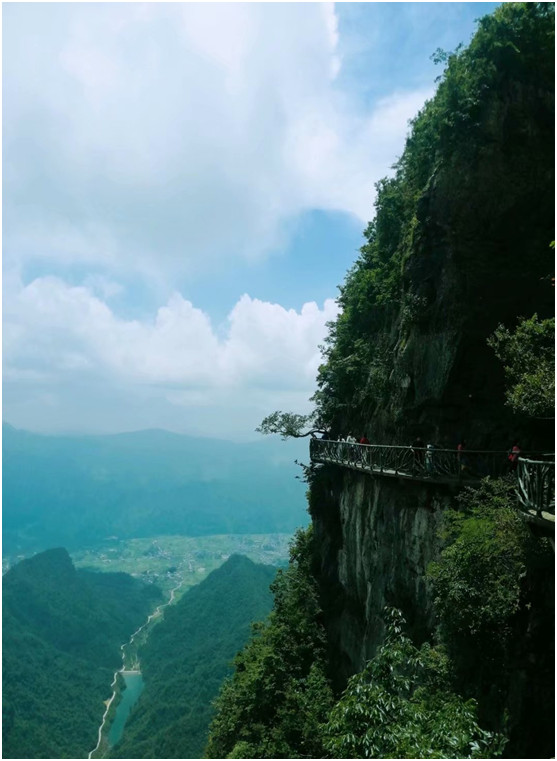玻璃栈道位于天门洞上方,在栈道上行走就如同悬浮在天门洞之上。从上面走过,能炼胆。胆小者、恐高症者勿去。
