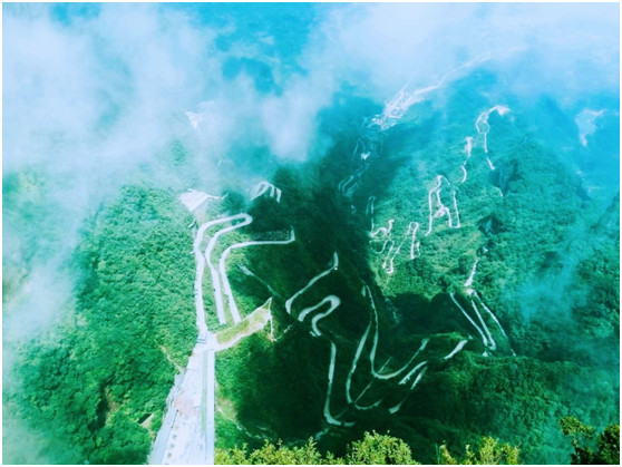 这条顺山势修建的通天大道刚好99个弯,暗合了“天有九重,云有九霄”之意。