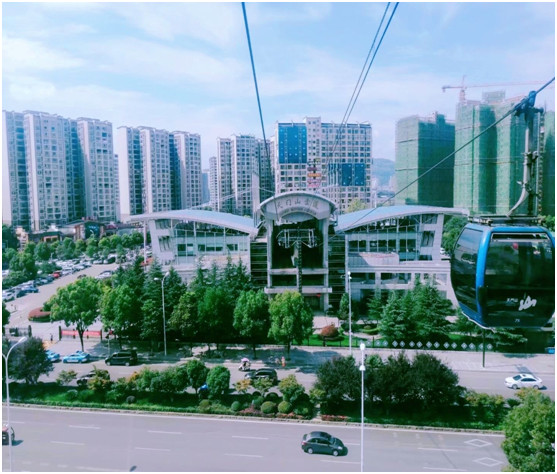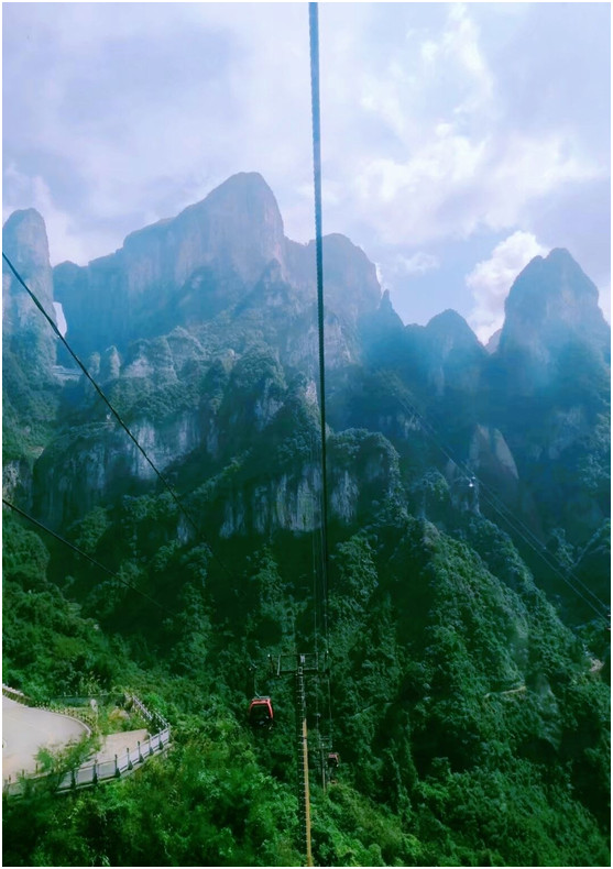 天门山索道,世界最长的高山索道之一,连接张家界城区与天门山山顶,因恢宏壮观有“虹索龙翔”之美誉。索道全长7455米,水平高差1279米,似腾云苍穹的巨龙,又宛如一条彩虹飞渡天上人间。索道单程约28分钟,途中可饱览城区景色、田园风光、险峰深壑,一路如行进在一幅恢宏画卷中,被誉为“世界第一空中移动观景长廊”。