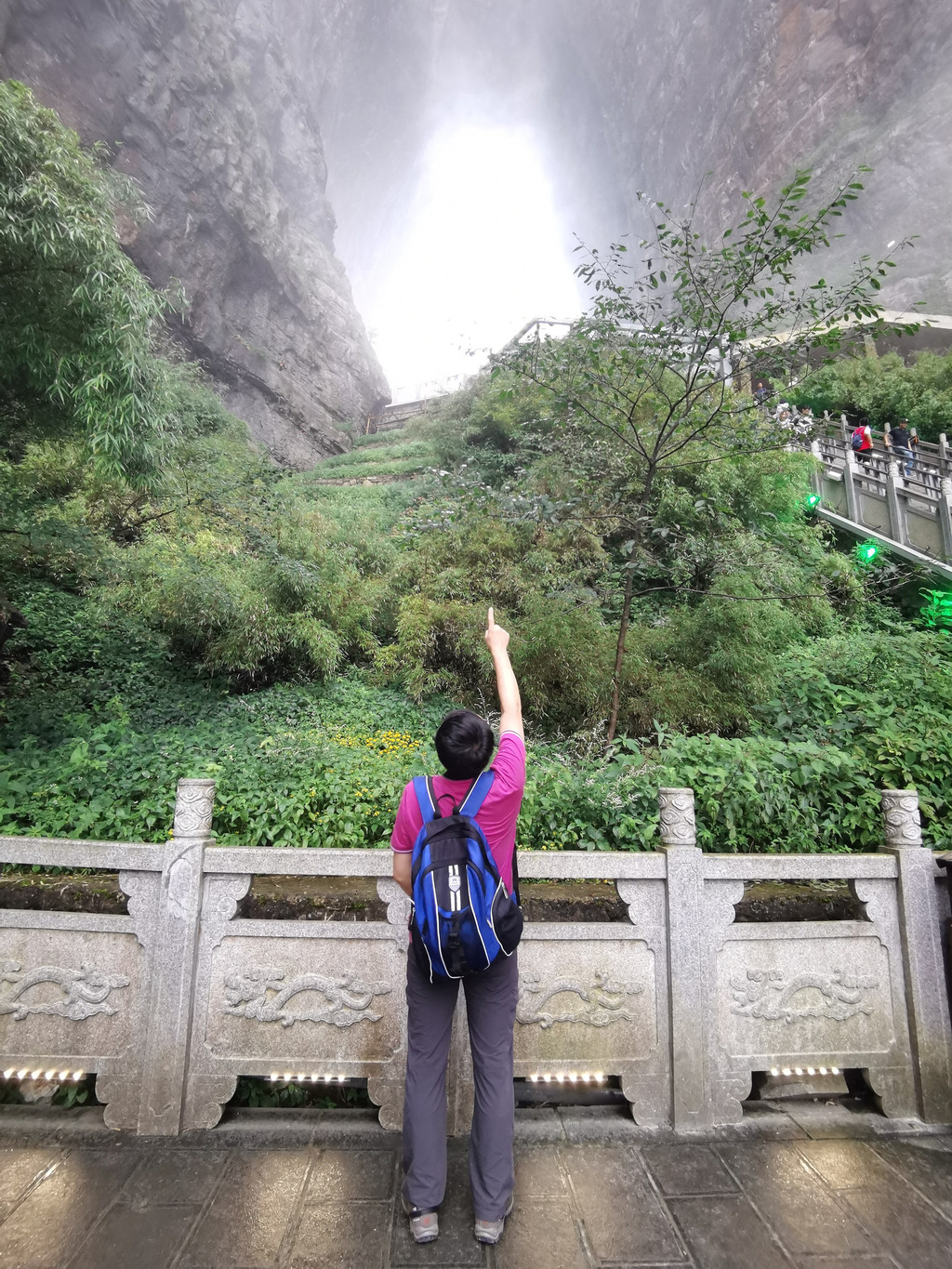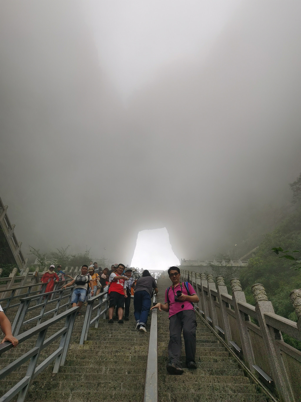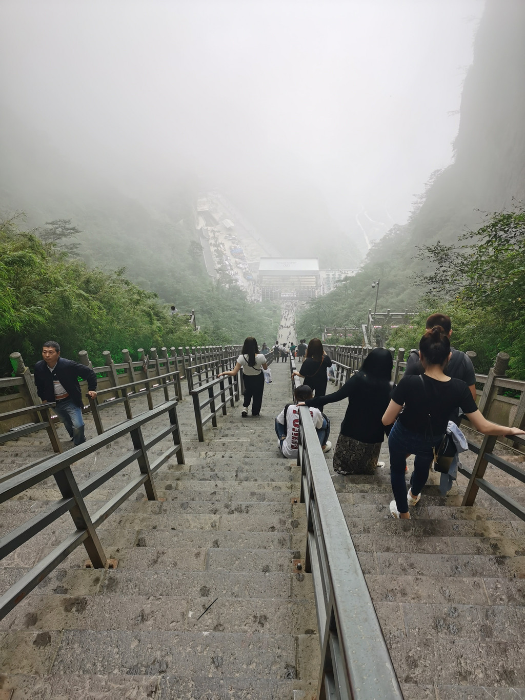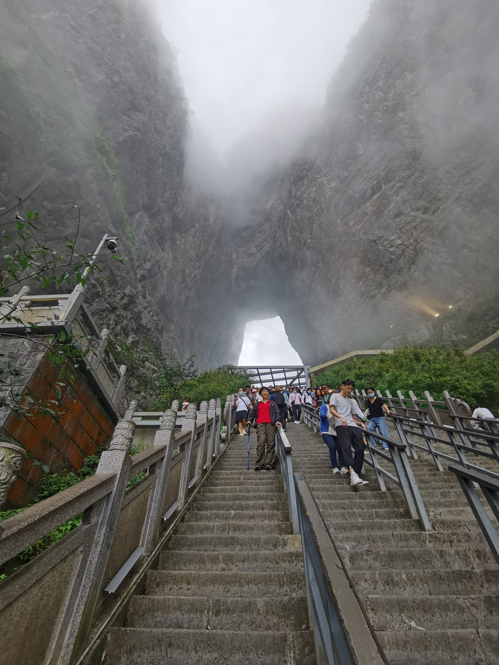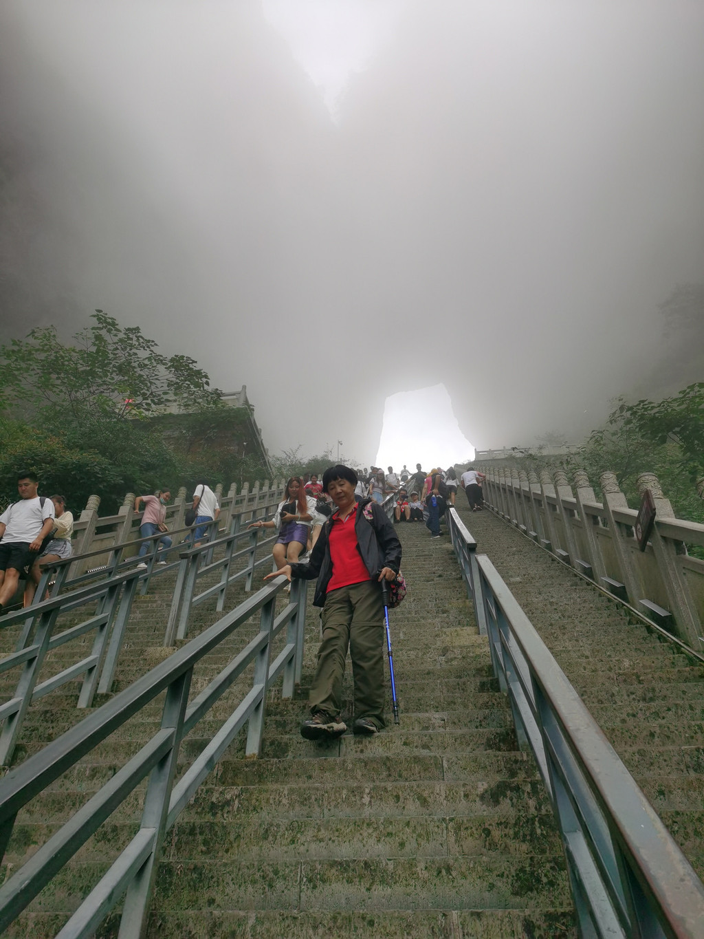 6天门洞平台往下,可步行“上天梯”下山,也可选择买票乘电动扶梯下山。我们选择步行,边走边拍照,一共用了45分钟到达天门洞下方平台。