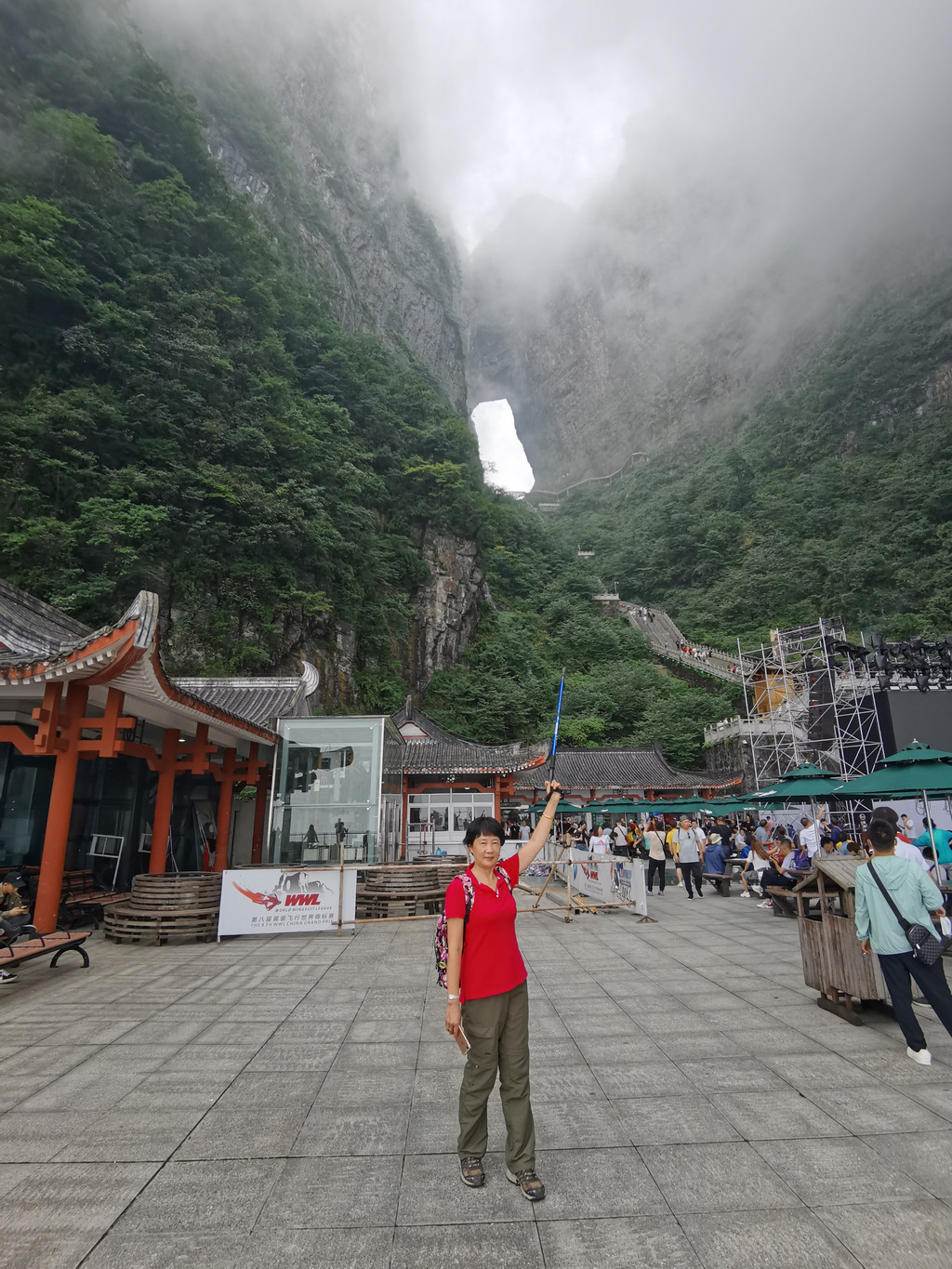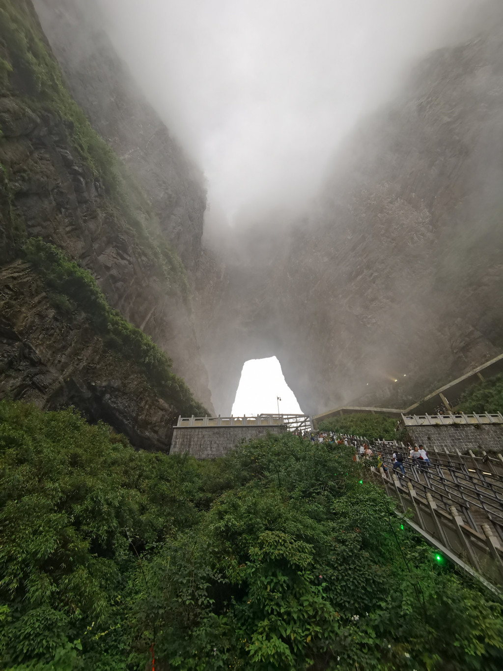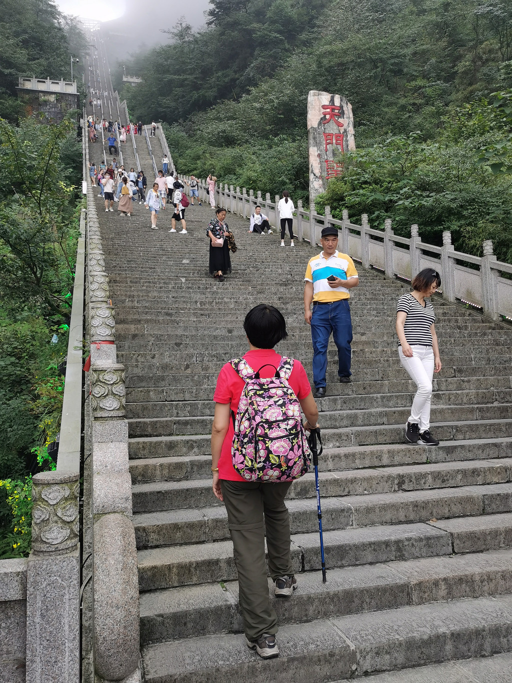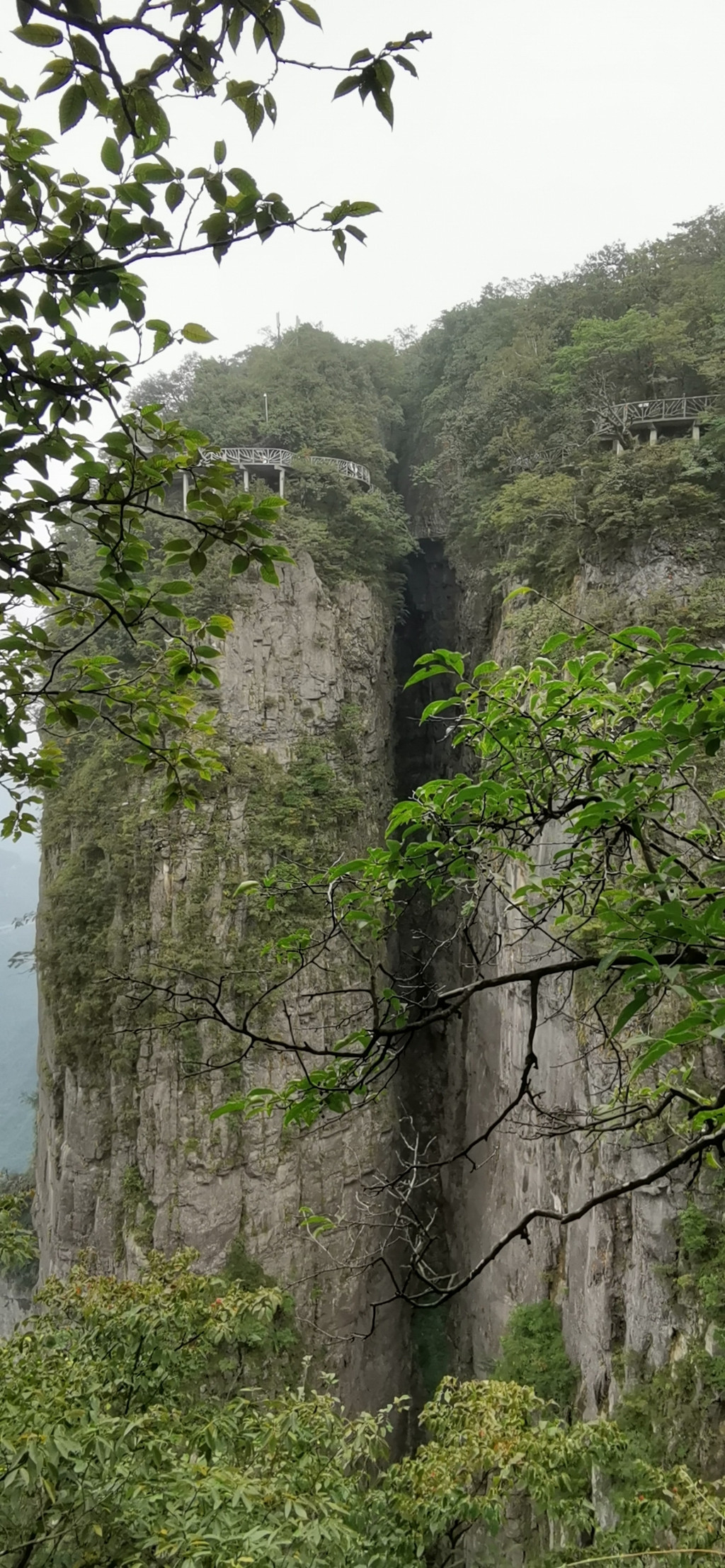 6天门洞平台往下,可步行“上天梯”下山,也可选择买票乘电动扶梯下山。我们选择步行,边走边拍照,一共用了45分钟到达天门洞下方平台。