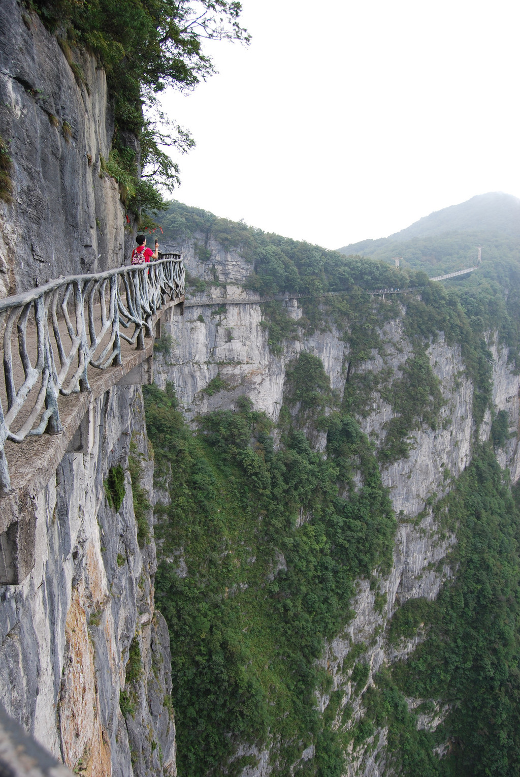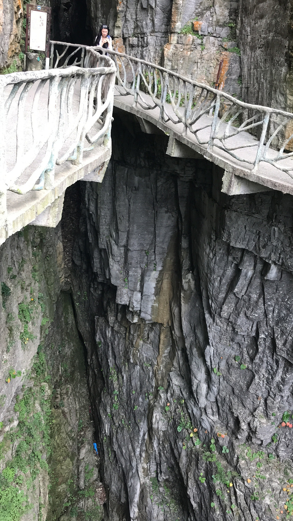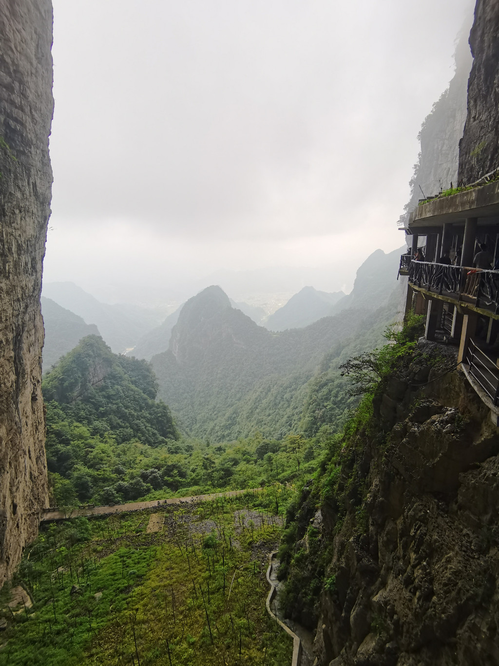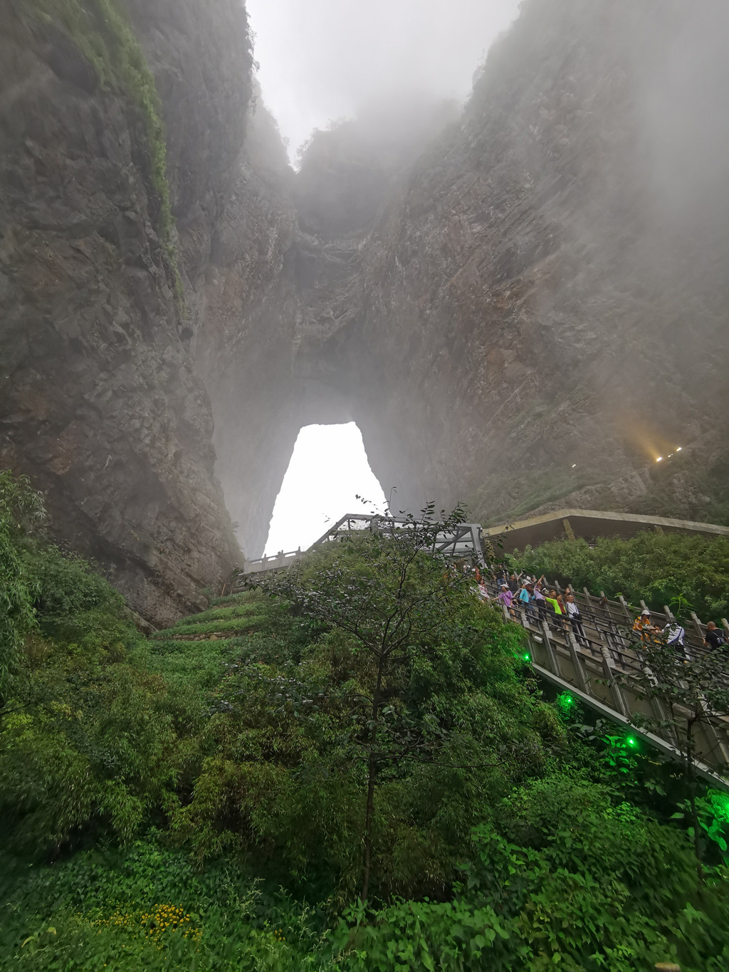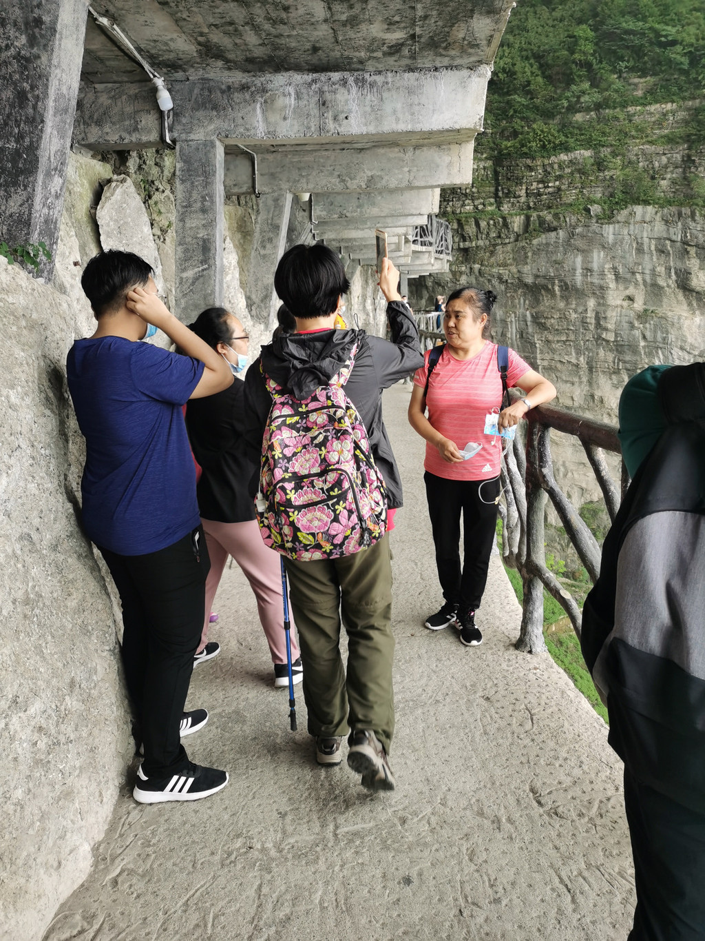 6天门洞平台往下,可步行“上天梯”下山,也可选择买票乘电动扶梯下山。我们选择步行,边走边拍照,一共用了45分钟到达天门洞下方平台。