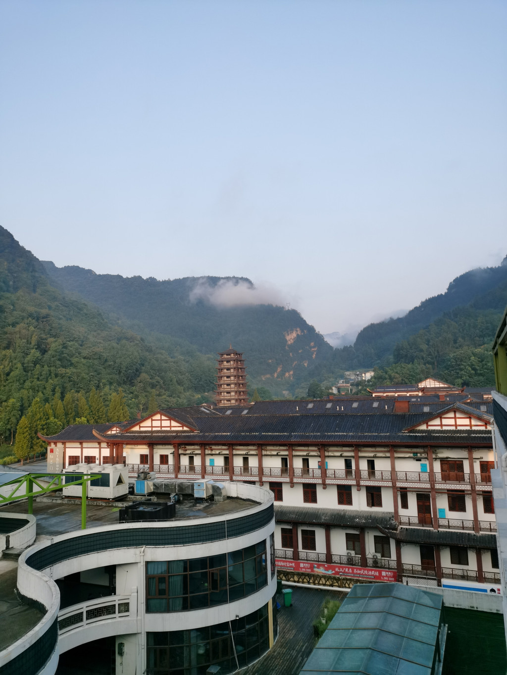 下图:从酒店的阳光餐厅平台上看景区入口。