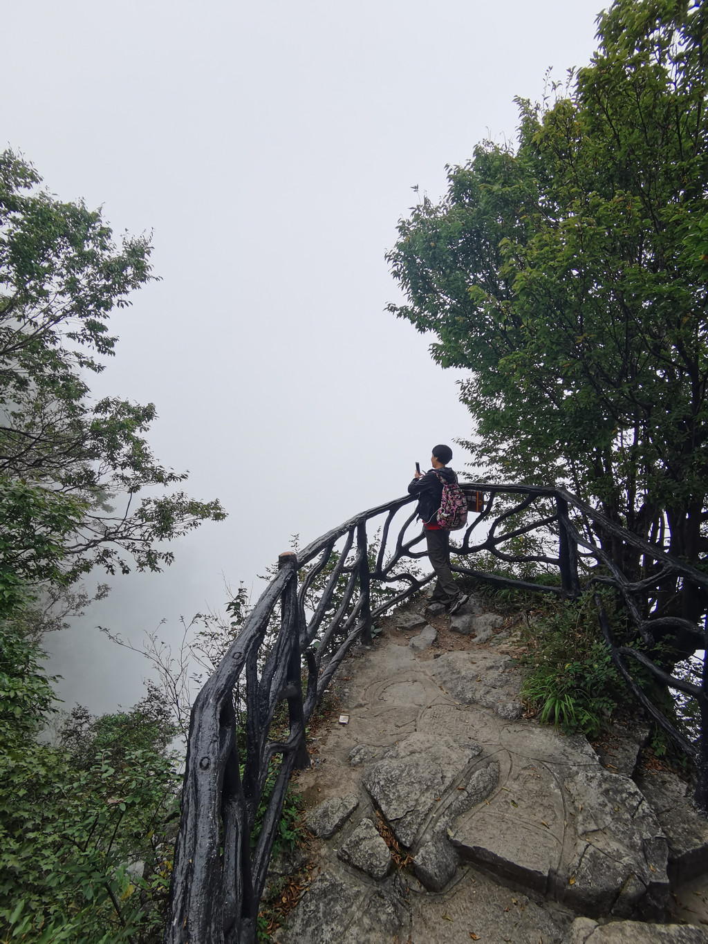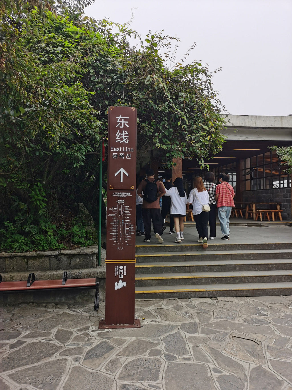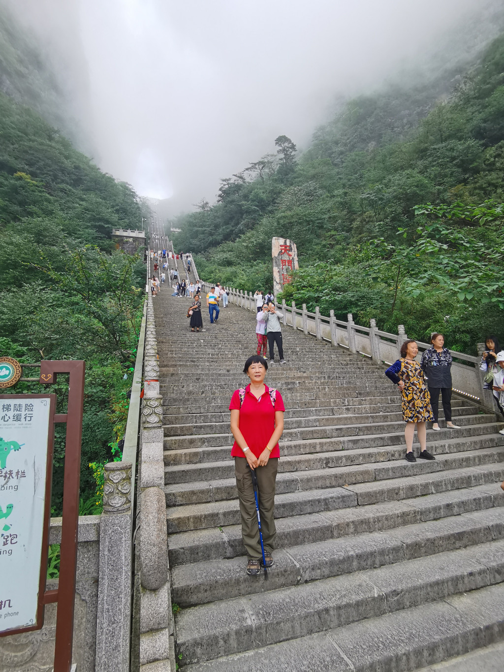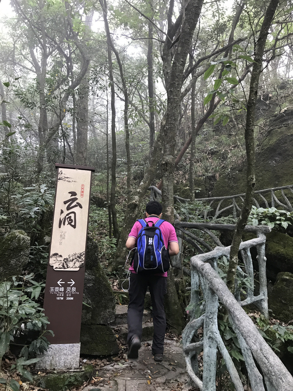 到这里该轮到关键问题:为了不爬或少爬山、究竟怎么走最好?出发前看了很多游记、攻略类资料,决定按照资料上说的中线上、西线下、横穿至东线天门洞再下山的计划。结果到这里一问,只有“东线“和“西线“。最后在山上工作人员指点下,选择了最终的线路(只舍弃了一个景点:云梦限顶)。