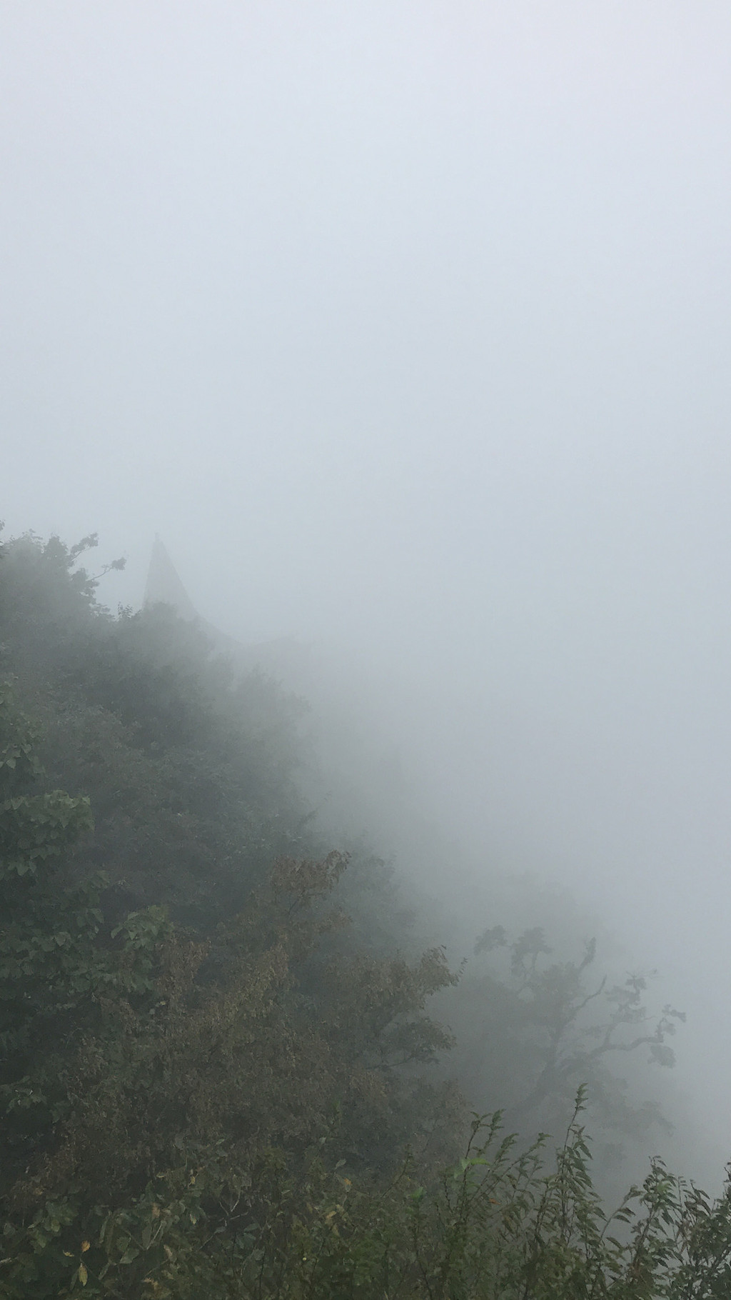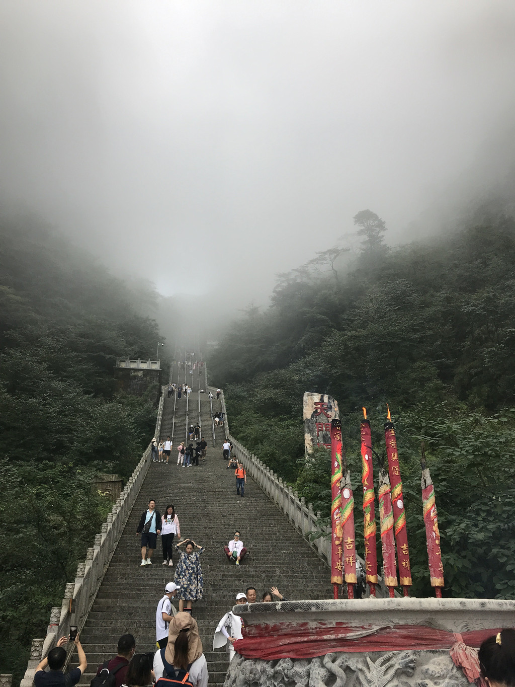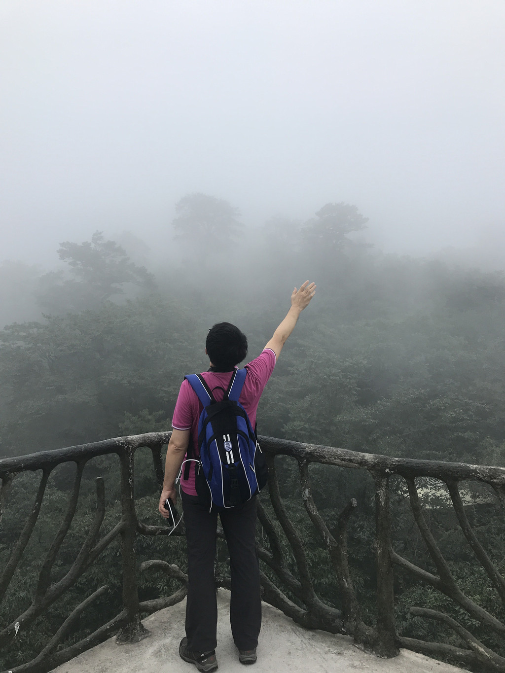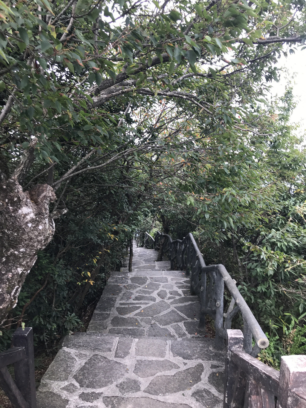 到这里该轮到关键问题:为了不爬或少爬山、究竟怎么走最好?出发前看了很多游记、攻略类资料,决定按照资料上说的中线上、西线下、横穿至东线天门洞再下山的计划。结果到这里一问,只有“东线“和“西线“。最后在山上工作人员指点下,选择了最终的线路(只舍弃了一个景点:云梦限顶)。