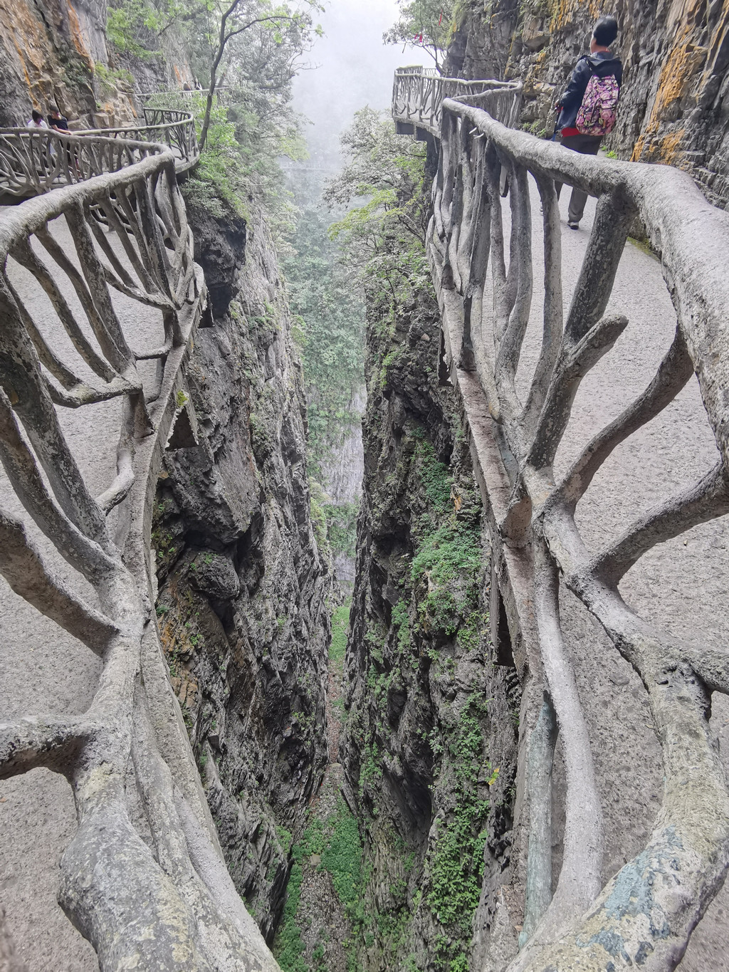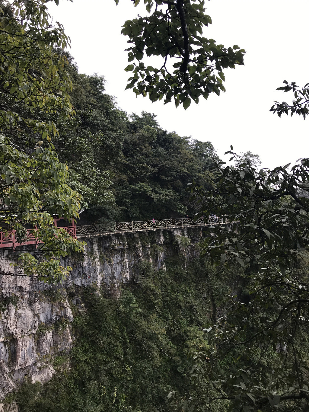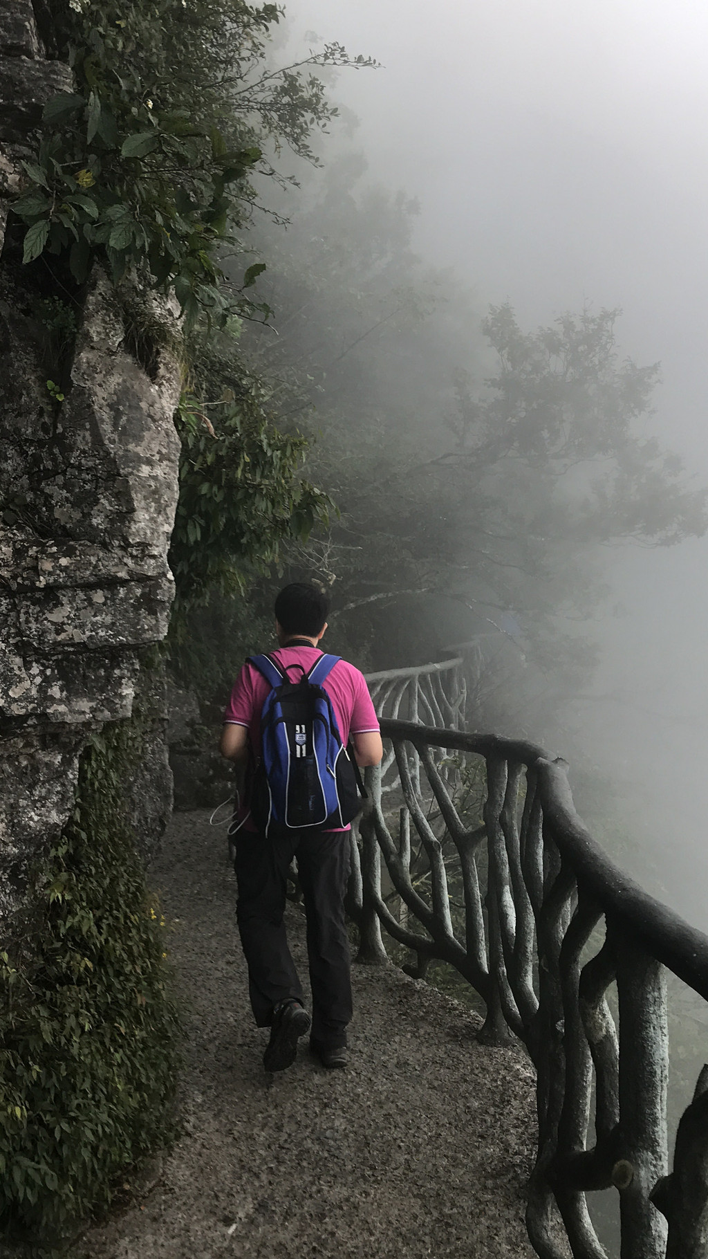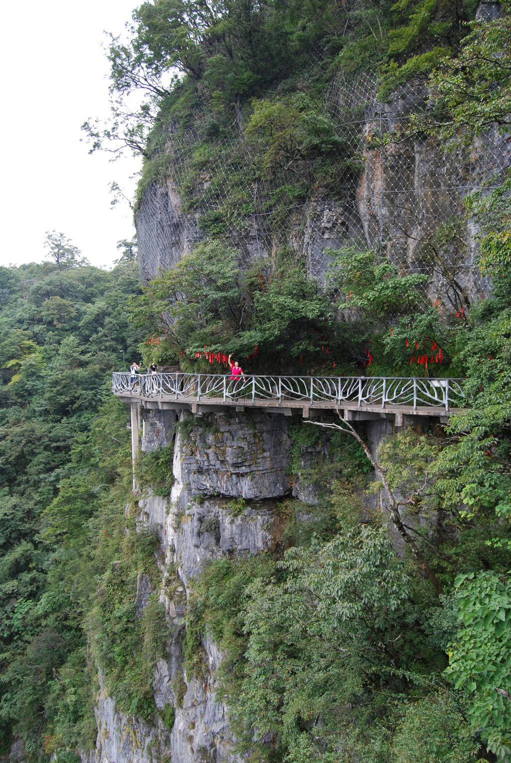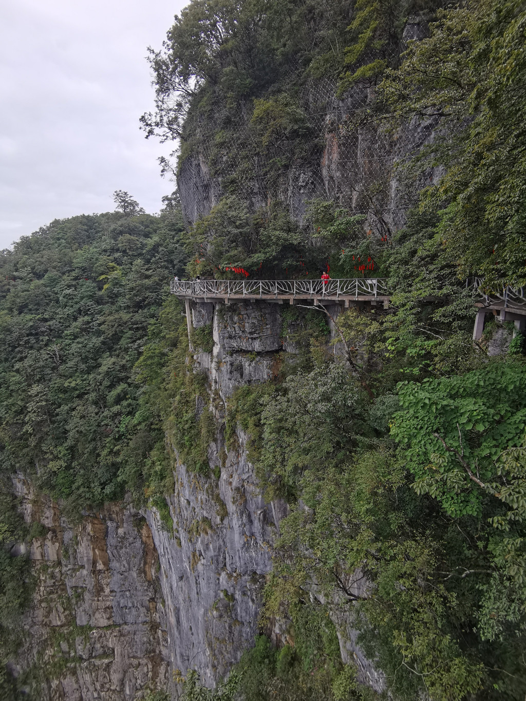 3、蟠龙崖线玻璃栈道、高空云廊一半(鲲鹏顶)返回,经珙桐园回到索道上站的小平台