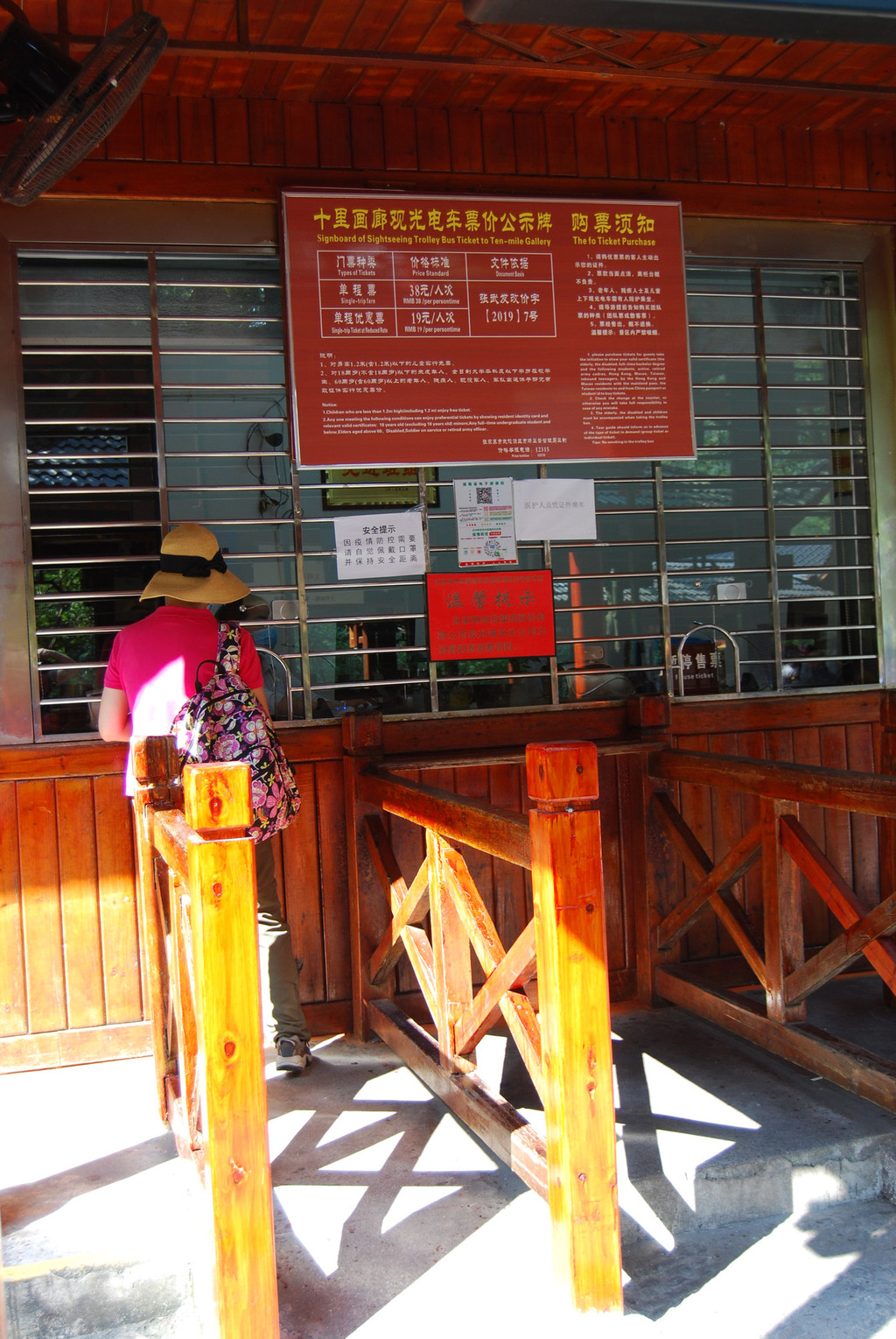 到了十里画廊,买票乘小火车进入景区,一边坐车观景一边听讲解。