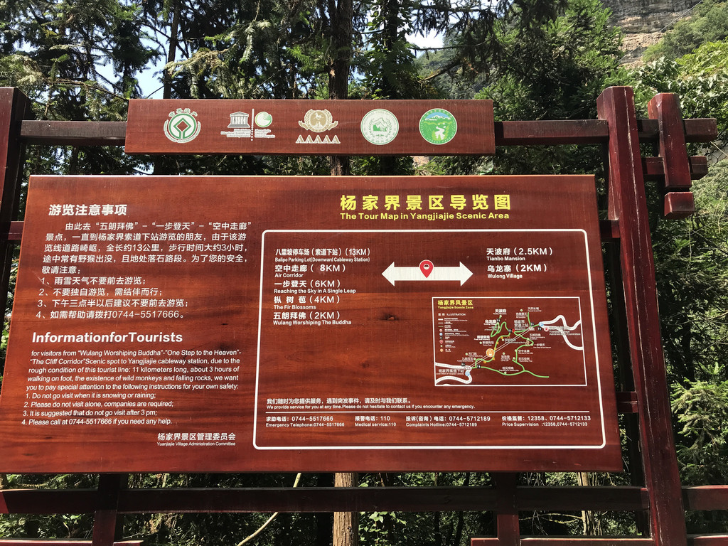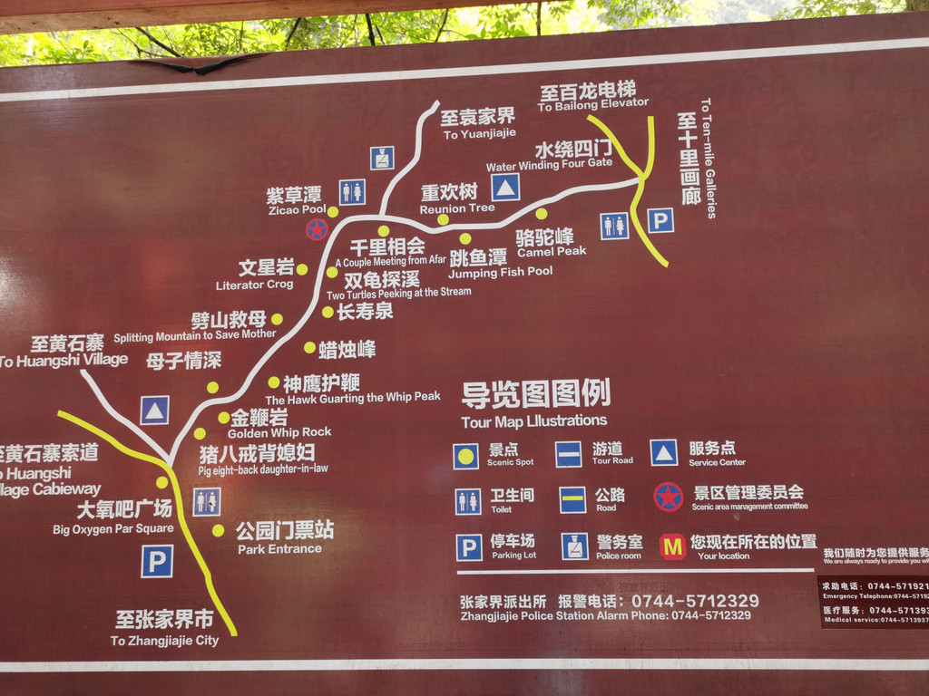 至此,武陵源景区部分的分布情况介绍完了。下面按照游玩过程介绍景点: