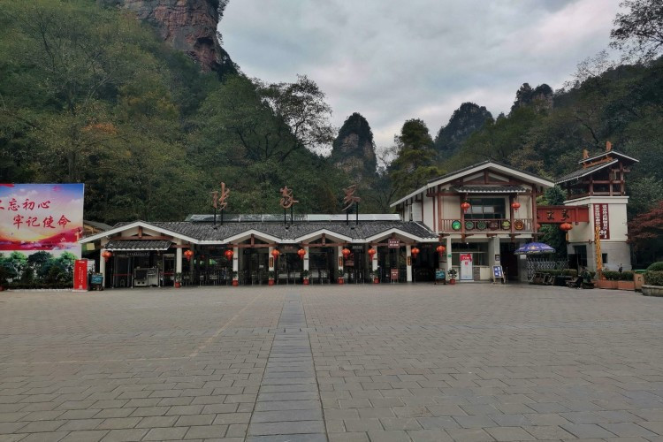 张家界森林公园一共有五个门,因为住在武陵源,所以就从最近的“武陵源标志门”进入。第一天的行程安排是从武陵源标志门进山,途经百龙天梯-袁家界-杨家界-黄石寨,最后从森林公园正门出去。进门的话,网络购票有专门的互联网通道,刷脸和身份证就能进去。进去后没有别的路,直接就是搭乘环保车。从这里可以搭车到十里画廊、水绕四门、天子山索道下站或者百龙天梯下站,问好调度员再上车,免得坐错车。今天直接搭车前往终点站百龙天梯。