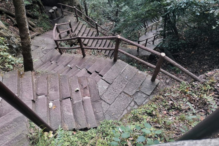 袁家界出来后,搭乘环保车,可前往杨家界索道上站,票价76元。也可以徒步走下杨家界,徒步下山可以经过一步登天、天波府等景点。