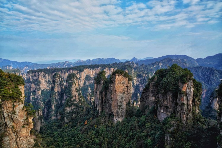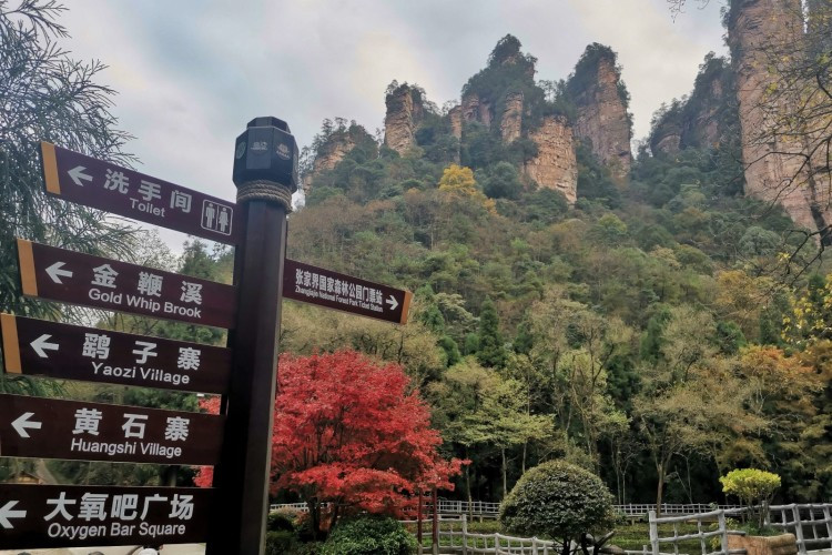 在凤凰古城呆了一天一夜后,见识过古城的夜景,下午就出发前往张家界了。从凤凰古城唯一的汽车站搭客车,耗时4小时,票价80元可到“张家界中心汽车站”;或者耗时5小时,票价100元可以直接到“武陵源汽车站”,都是同一辆车。区别在于,前者位于张家界市区,靠近“天门山景区”;后者在张家界武陵源区,靠近“张家界森林公园”。