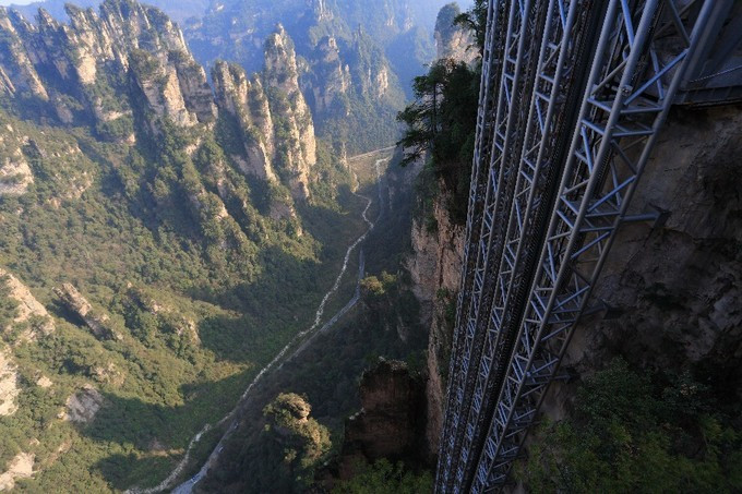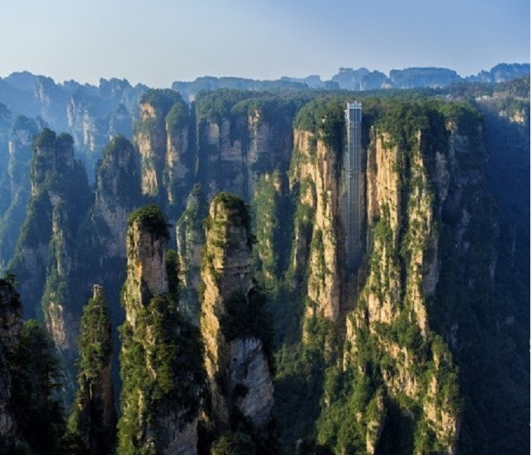 然后!然后!然后!!!终于要来完成之前未完成的梦,准备搭乘拥有一项吉 尼斯 世界纪录的户外观光电梯—百龙天梯,整个电梯高达326米,瞧着可壮观了。