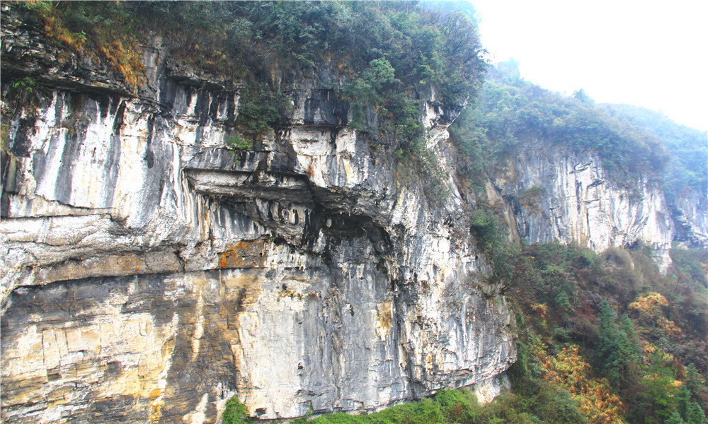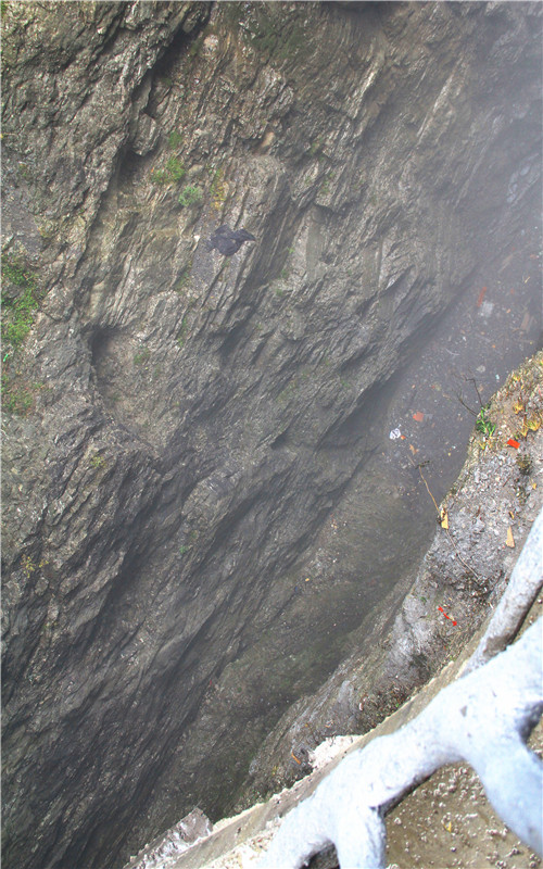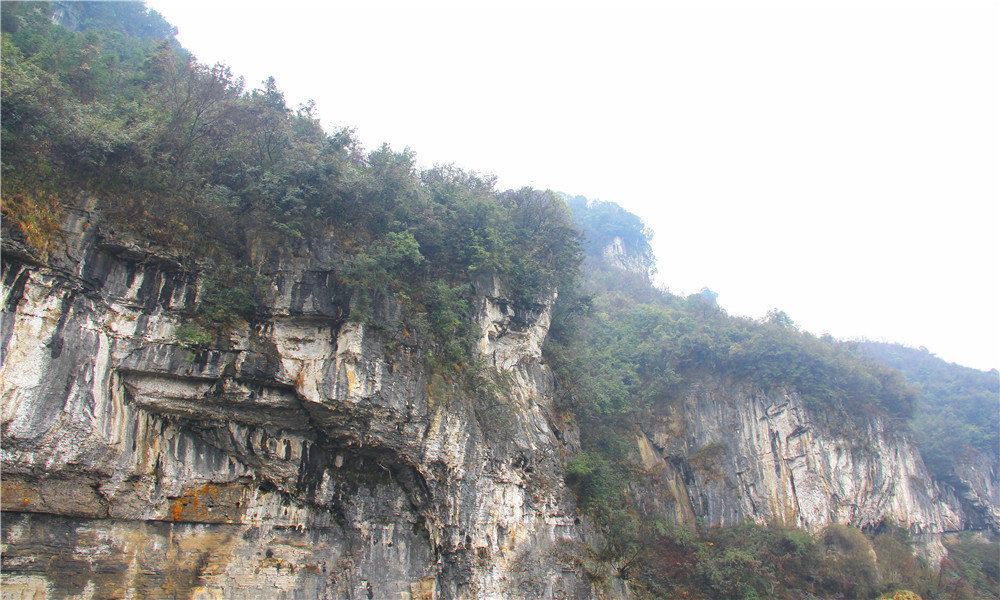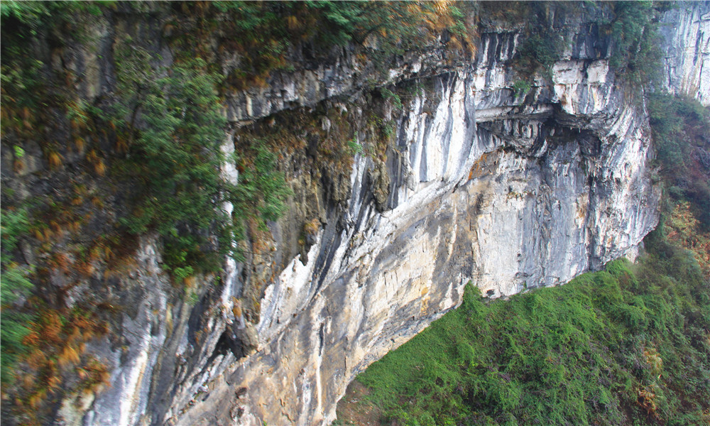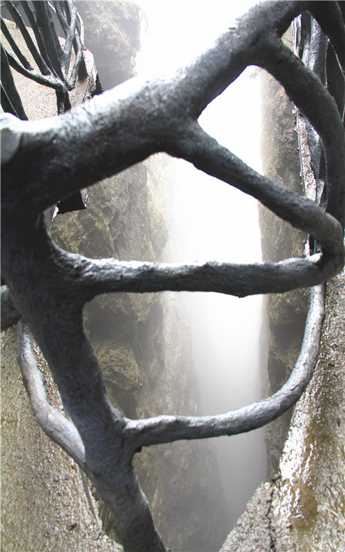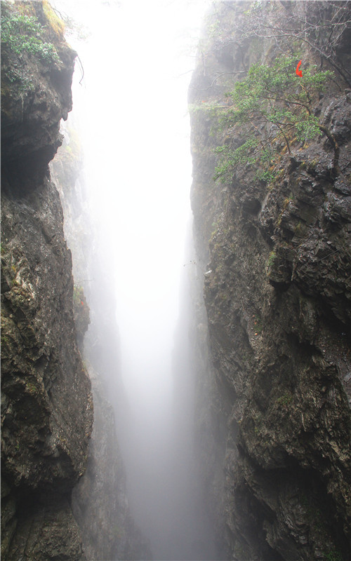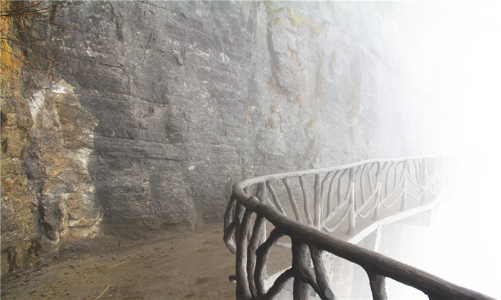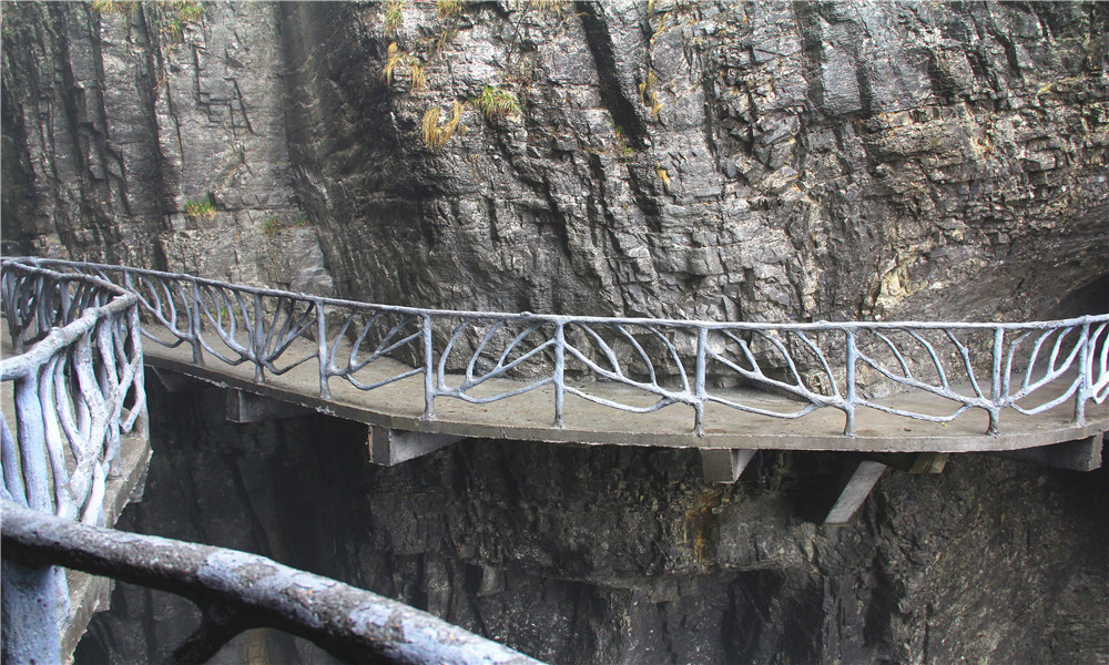 鬼谷栈道全线既不在悬崖之巅,也不在悬崖之侧,而是全线都立于万丈悬崖的中间,给人以与悬崖共起伏同屈伸的感觉。
