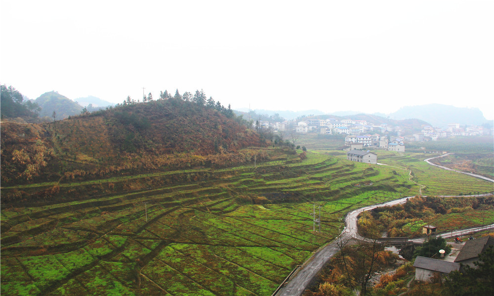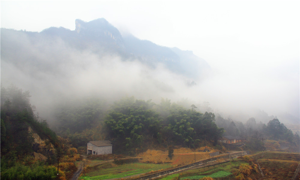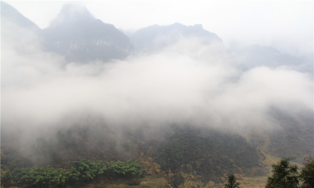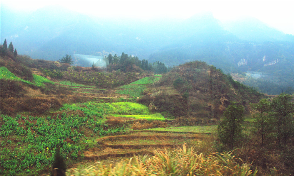 沿途一路的山山水水,山水相连,连绵起伏。山腰盘旋的那曲折蜿蜒的公路如缕缕飘带缠绕在那青山之中,成为一道独特亮丽的风景。朦胧的远山,笼罩着一层轻纱,影影绰绰,在飘渺的云烟中忽远忽近,若即若离,看到此场景,只想感慨一句:“此景只应天上有,人间能得几回闻