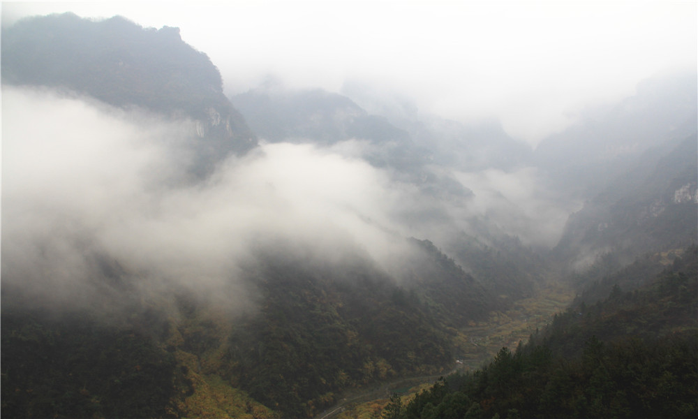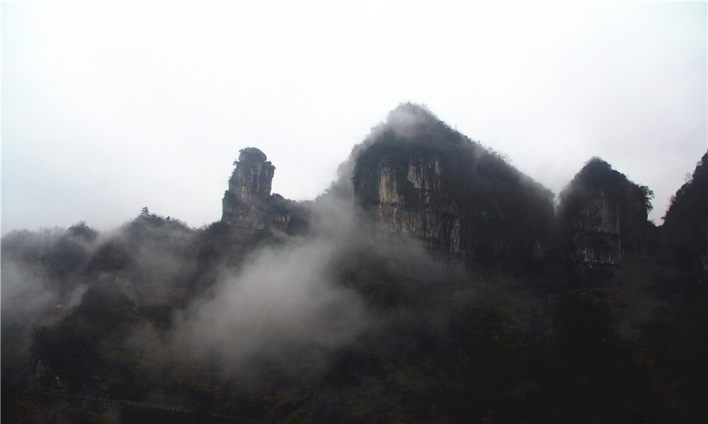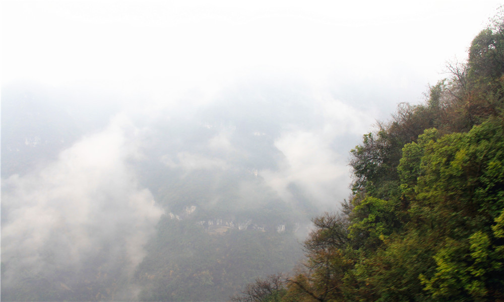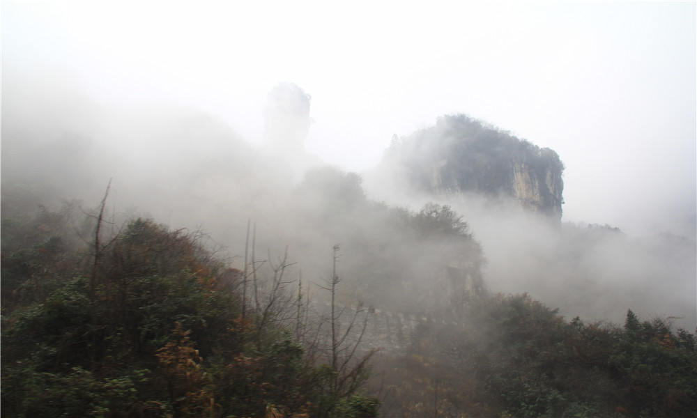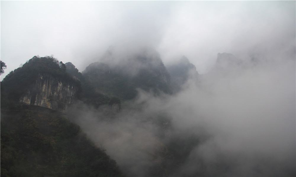 进入张家界市天气就不好,大雾弥漫,无法上山。