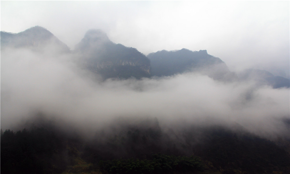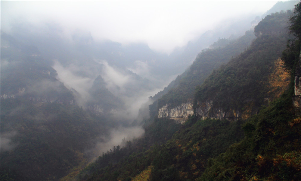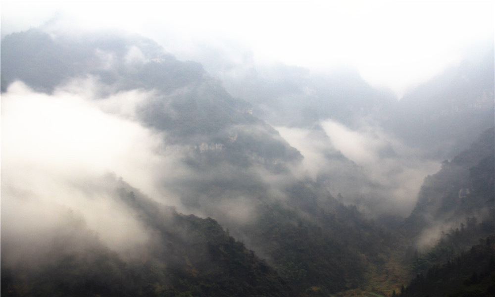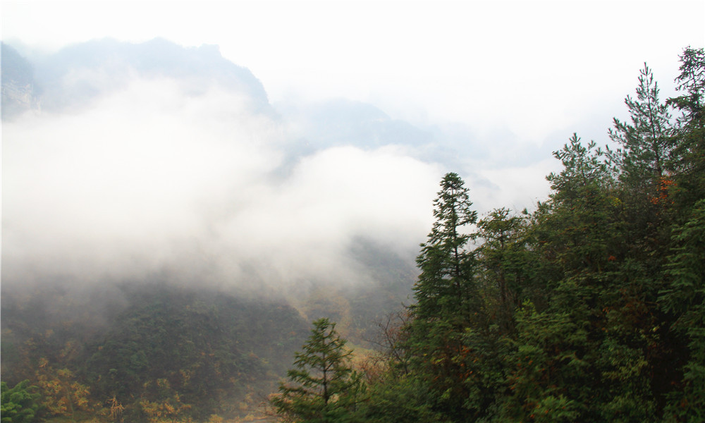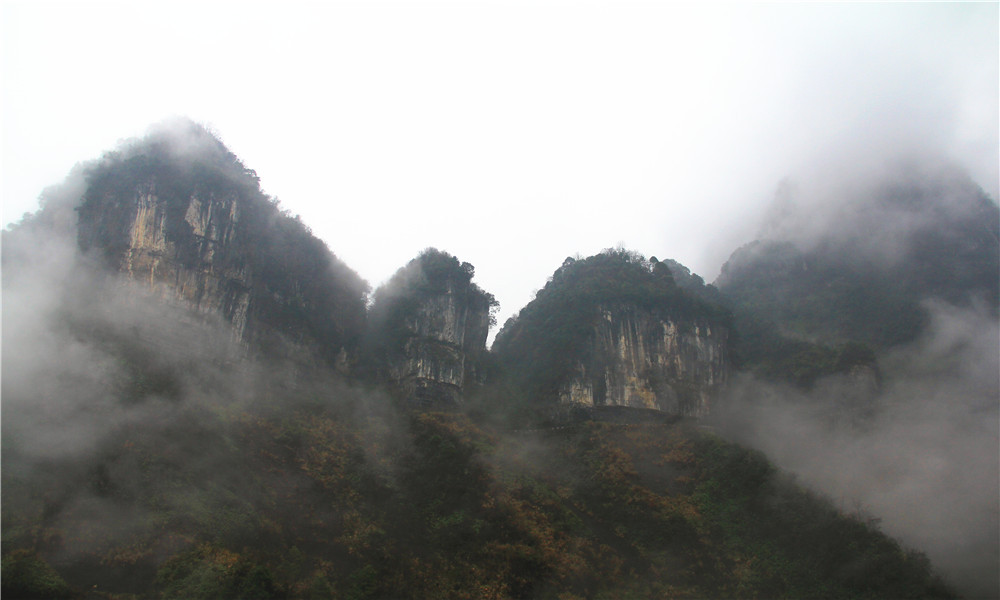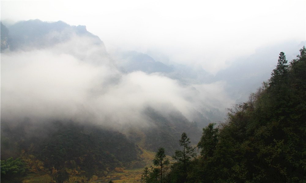 进入张家界市天气就不好,大雾弥漫,无法上山。