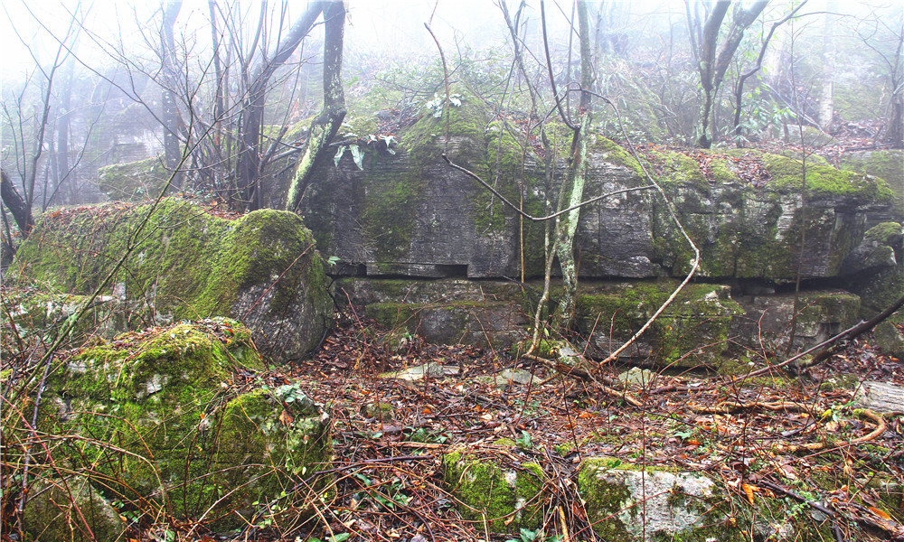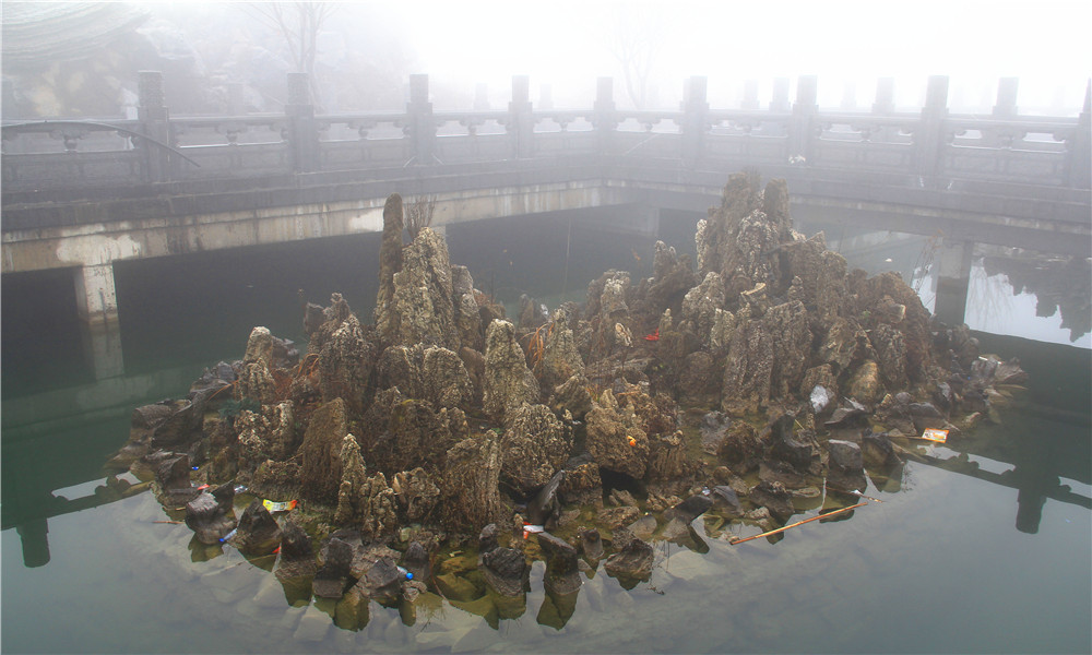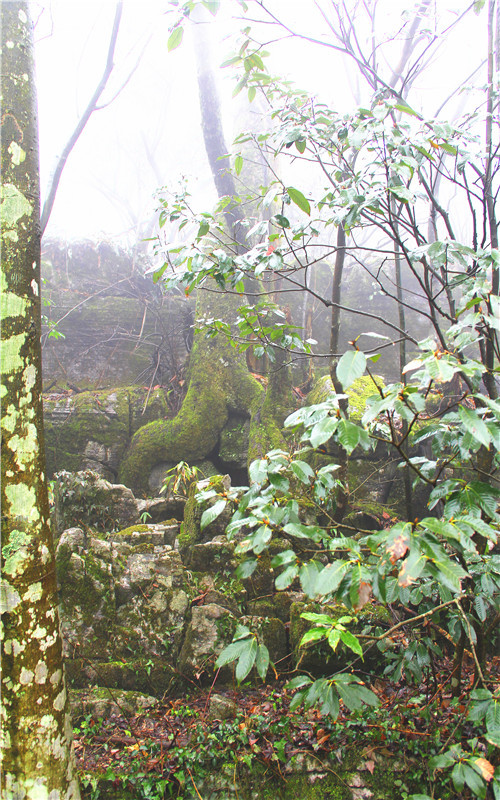 一棵参天榉树,生长在巨石之上,根系将巨石层层缠绕,不愧是木石奇缘的代表作。