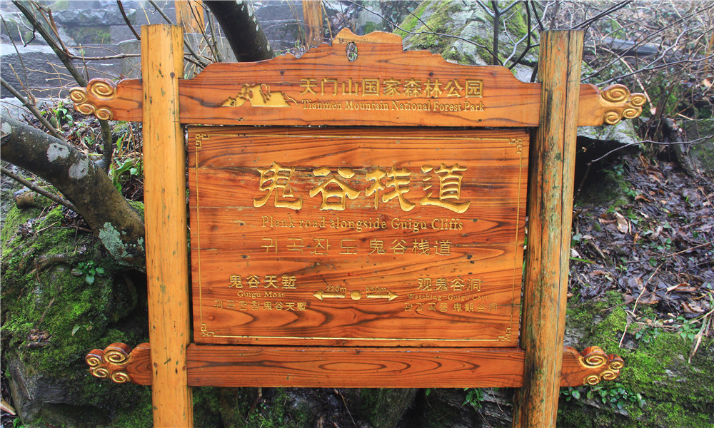 鬼谷栈道栈道全长1600米,平均海拔为1400米,起点是倚虹关,终点到小天门。
