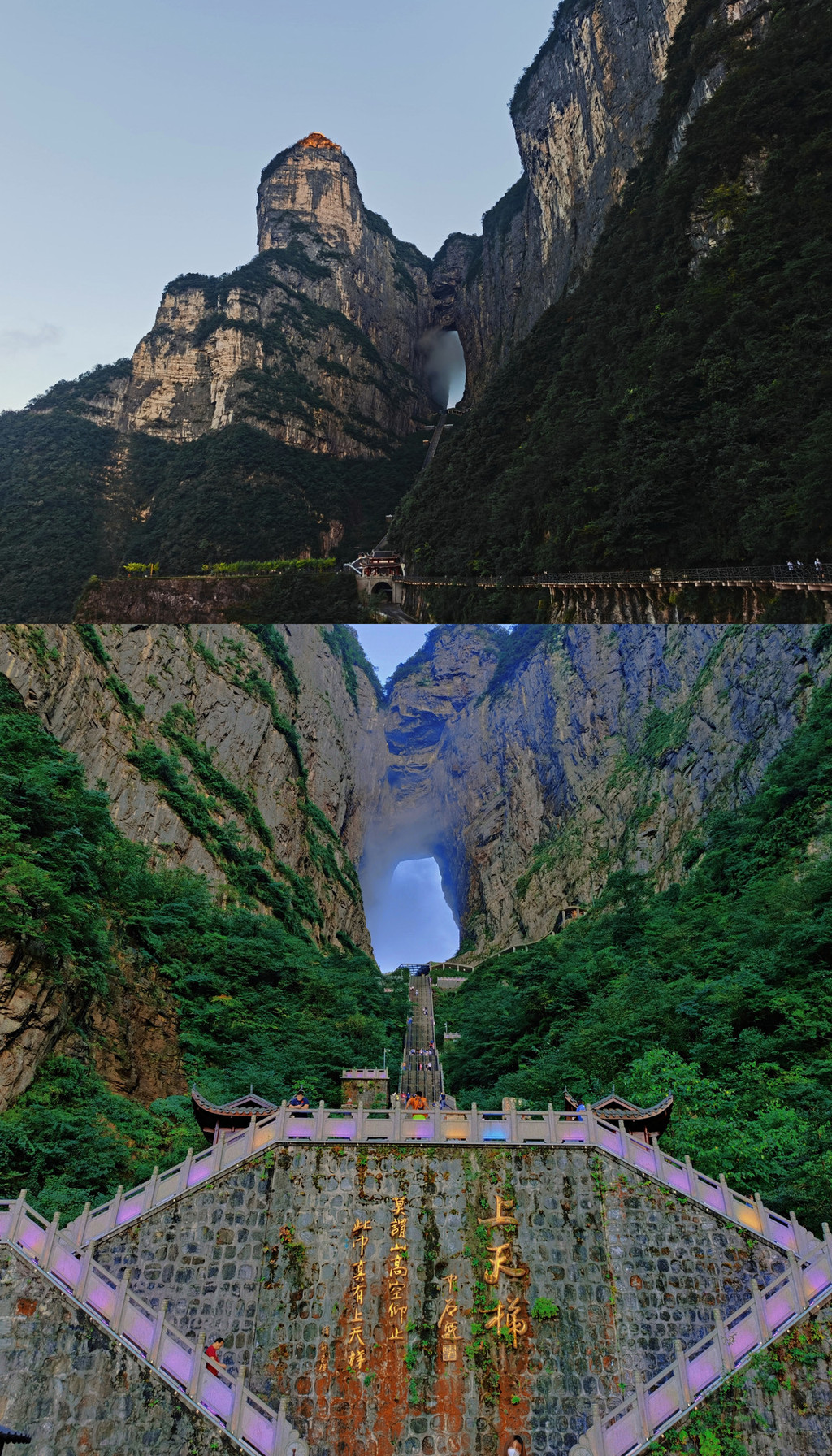 走完以后就是前往天门洞了,先坐电梯,然后要是不想从洞口的楼梯走下去,旁边有电梯,因为当天楼梯有点潮湿所以选择了电梯,这电梯坐到怀疑人生,也不知道和重庆号称最长电梯比谁更长,站累了的我都直接坐电梯上自拍了(虽然被工作人员叨叨了好久)
