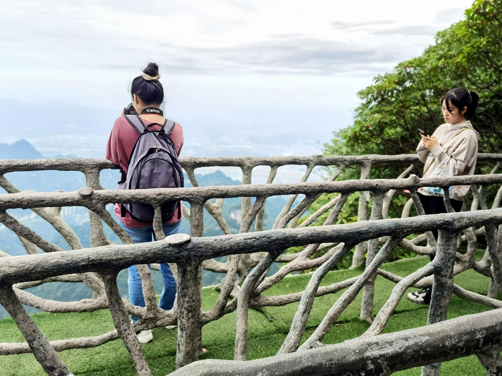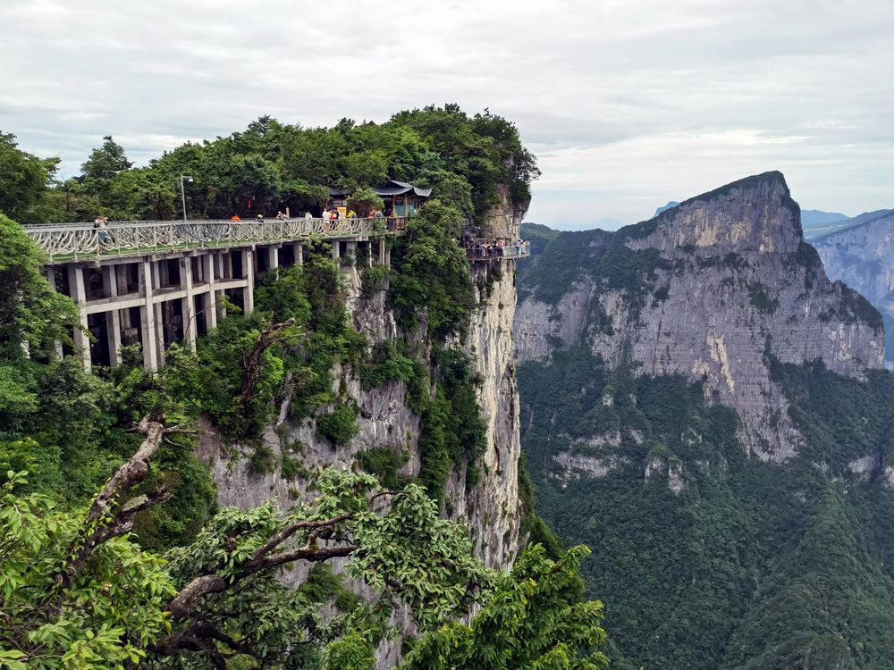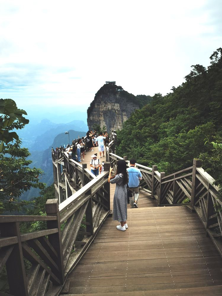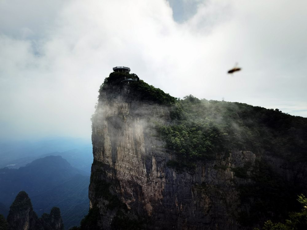 索道终点是云梦仙顶,位于天门最高峰,海拔1518.6米,张家界最高地理坐标,是一座天然瞭望台。