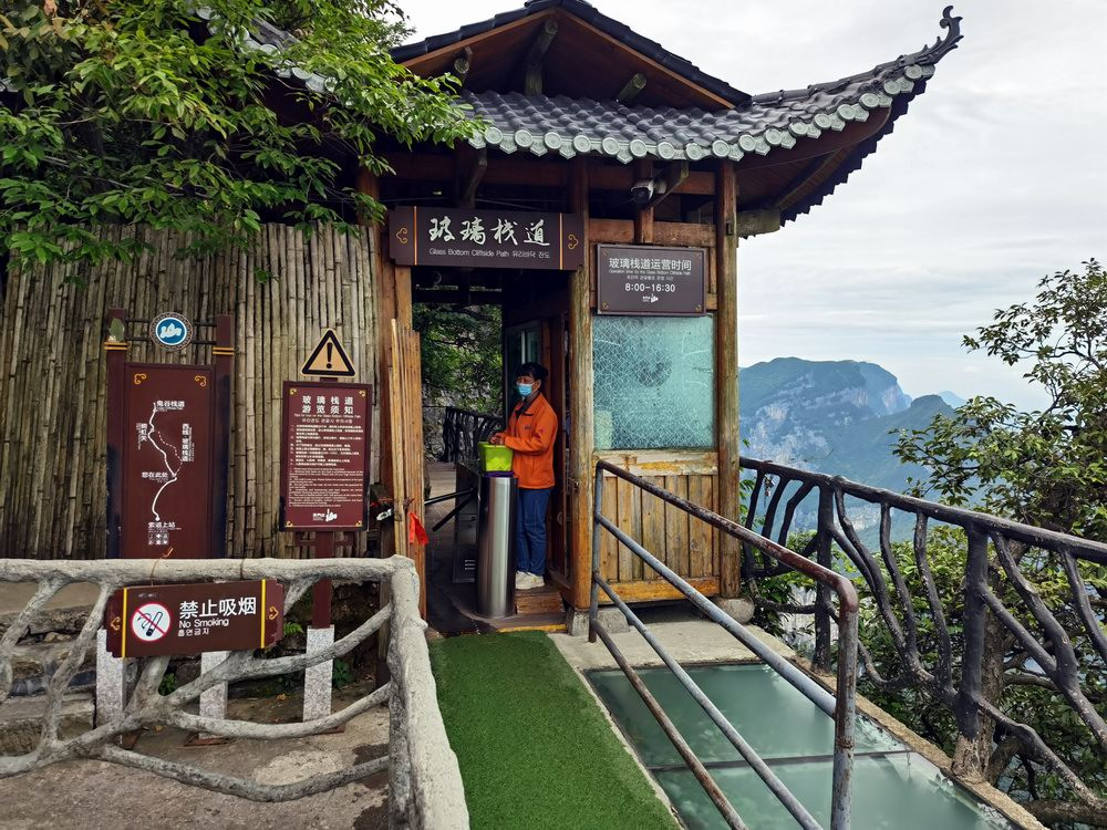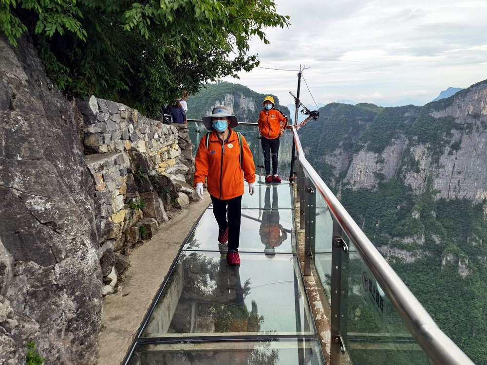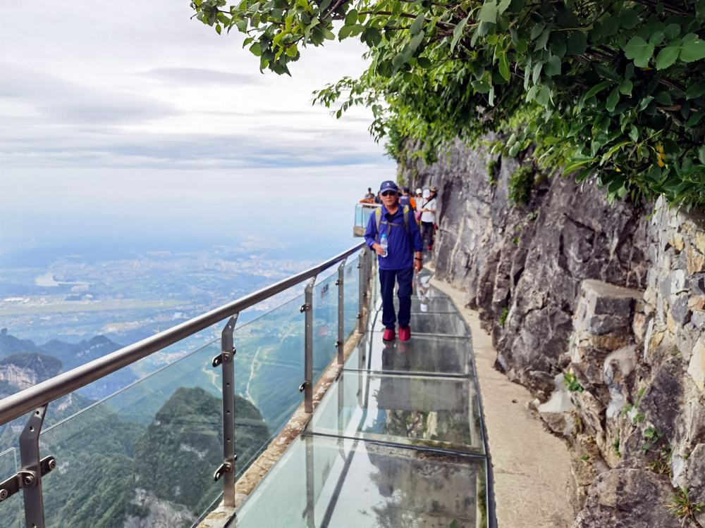 西线玻璃栈道悬于山顶西线,长60米,最高处海拔1430米,宽1.6米,全线为透明玻璃制成。