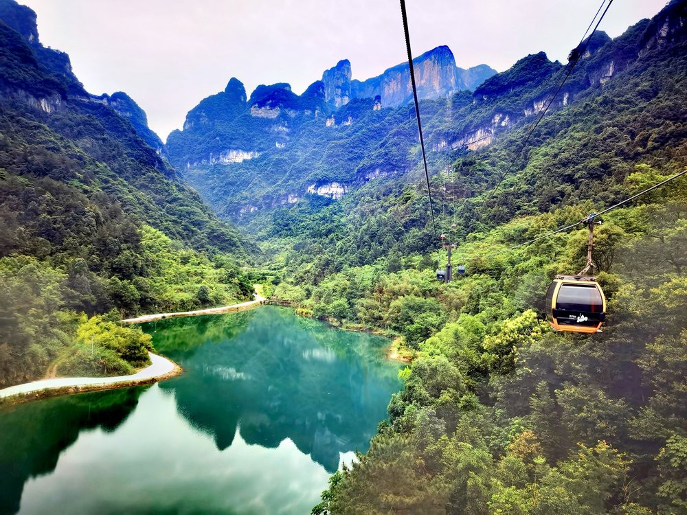 索道沿途经过现代城市风光,秀美田园风光以及雄奇高山风光,堪称世界第一空中移动观景长廊。