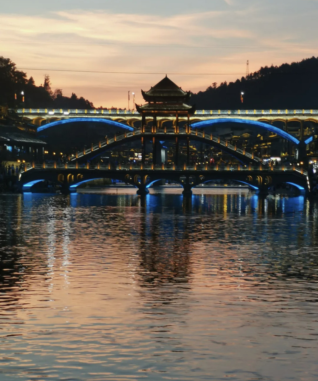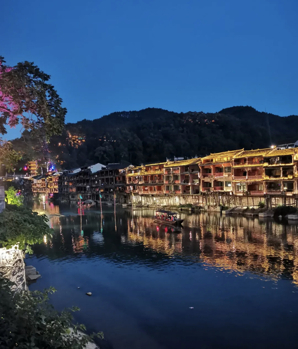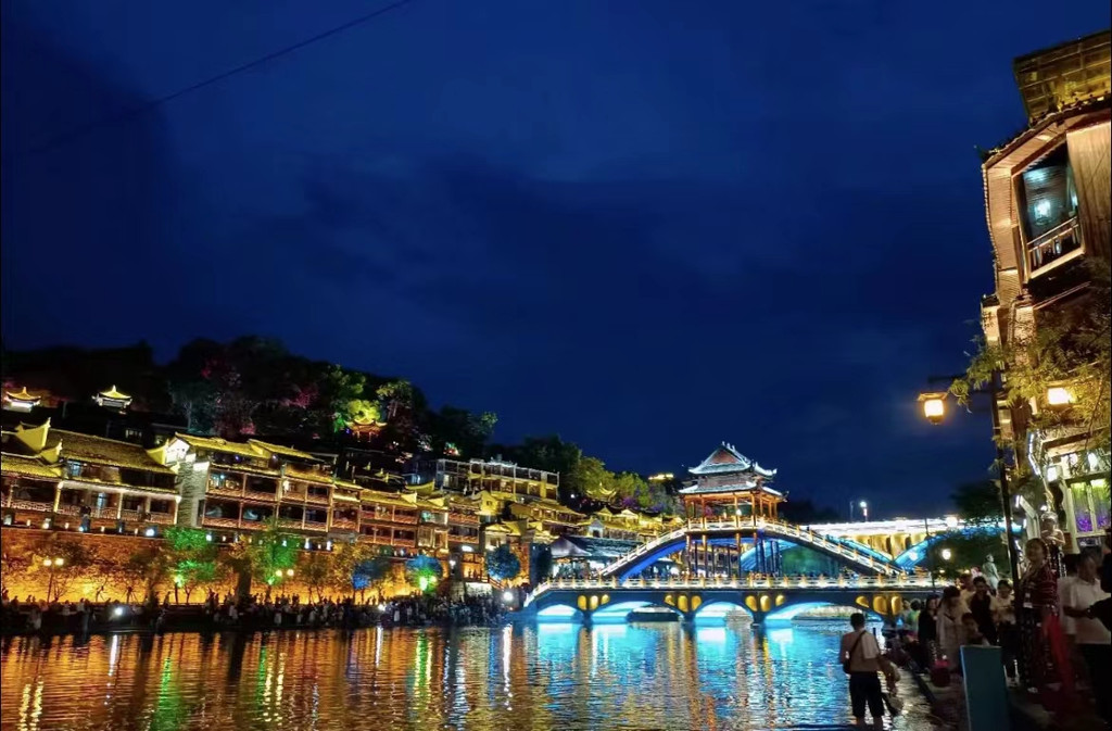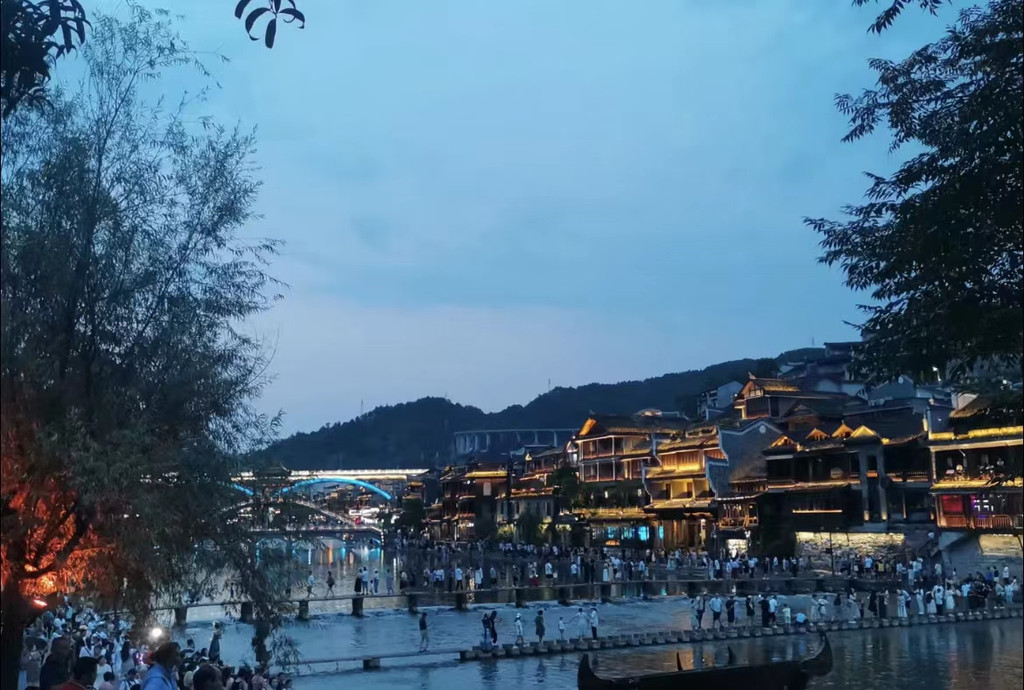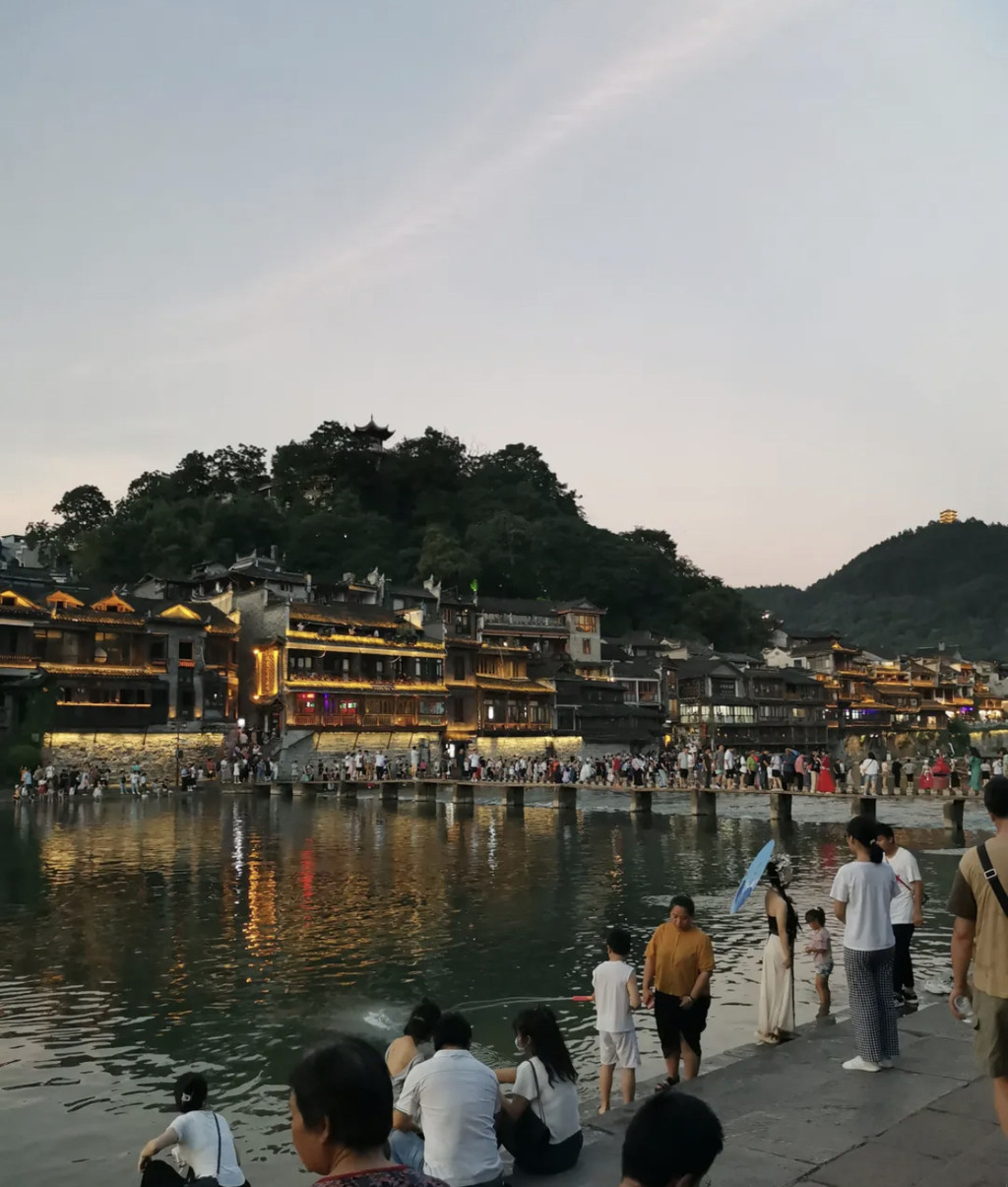 凤凰古城 :念叨了这么多年,总算来到这个半人造景点了,不用想,人暴多,到处都是拍照的,一身民族服装的反而是游客,沱江的水很好,好多小朋友都在岸边玩水,心心念念的石墩桥走的心惊胆颤,算了,我们反其道而行以,走另外一边,人很少,景色更为清晰,水幕电影和真人表演能让人安静的欣赏一下,坐着乌篷船,看看夜景,走走无人的石墩桥,别有风味