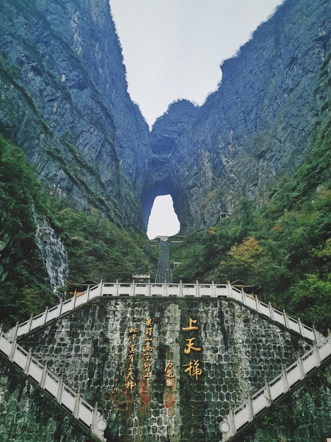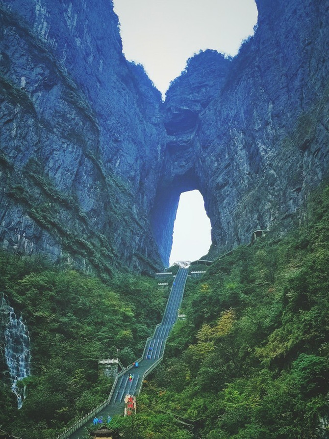 我们第一个去的就是天门洞,毕竟这里也是张家界非常有名的景点了。注意,天门洞是在天门山哦。这里出了天门洞之外,还有999级台阶,玻璃栈道,鬼谷栈道。这些景色,有的是天然形成的,有的是人工造就的。不管是哪一种,景色都很漂亮。