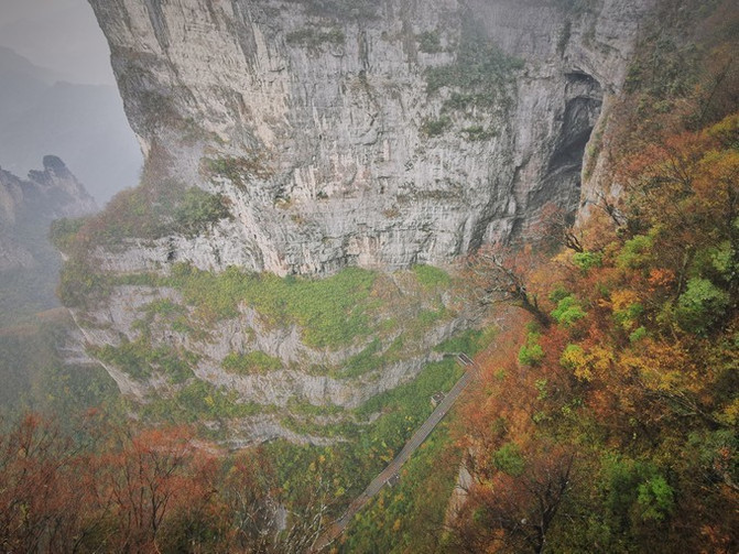现在张家界上面也是层林尽染的感觉,看看这鞋树木,有的地方叶子都已经是红彤彤的了。