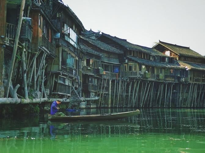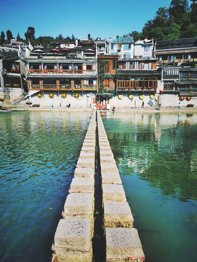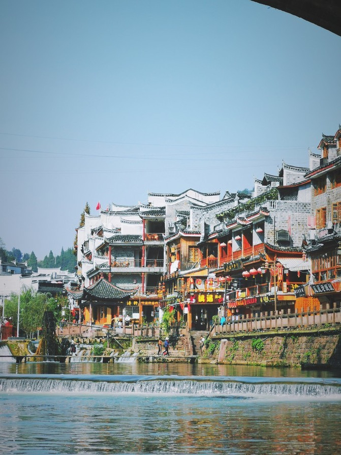再看看这些河边的小建筑,目前很多建筑都是改成了民宿或者是饭店。到了晚上,一定要进去看一看。灯光下的凤凰古镇和白天是完全不一样的景色。