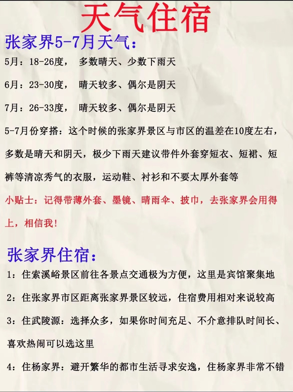 5-7月份穿搭:这个时候的张家界景区与市区的温差在10度左右,
