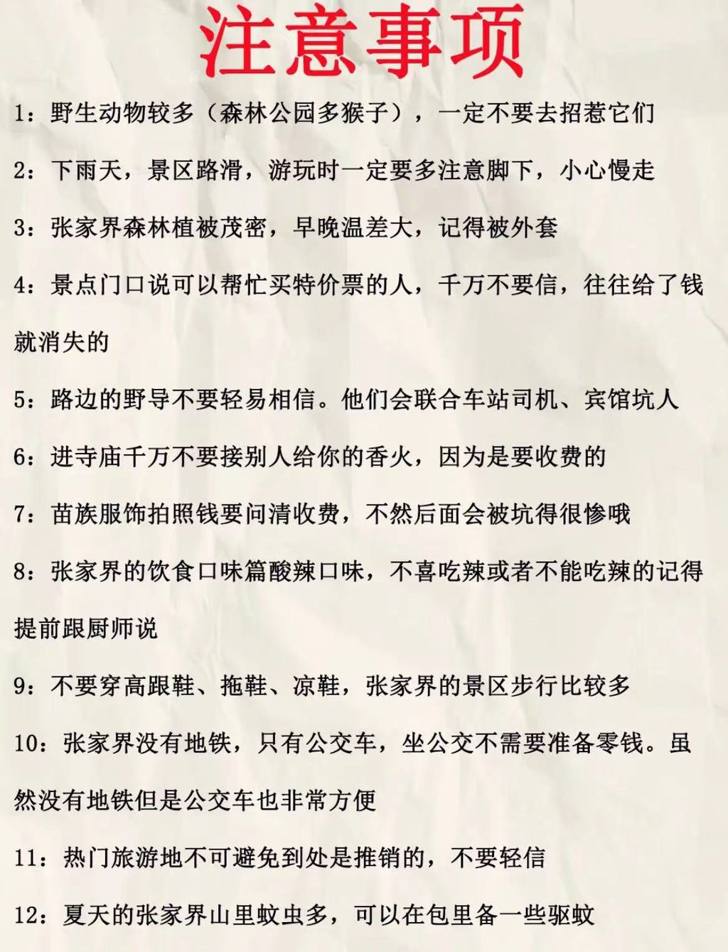 12:夏天的张家界山里蚊虫多,可以在包里备一些驱蚊