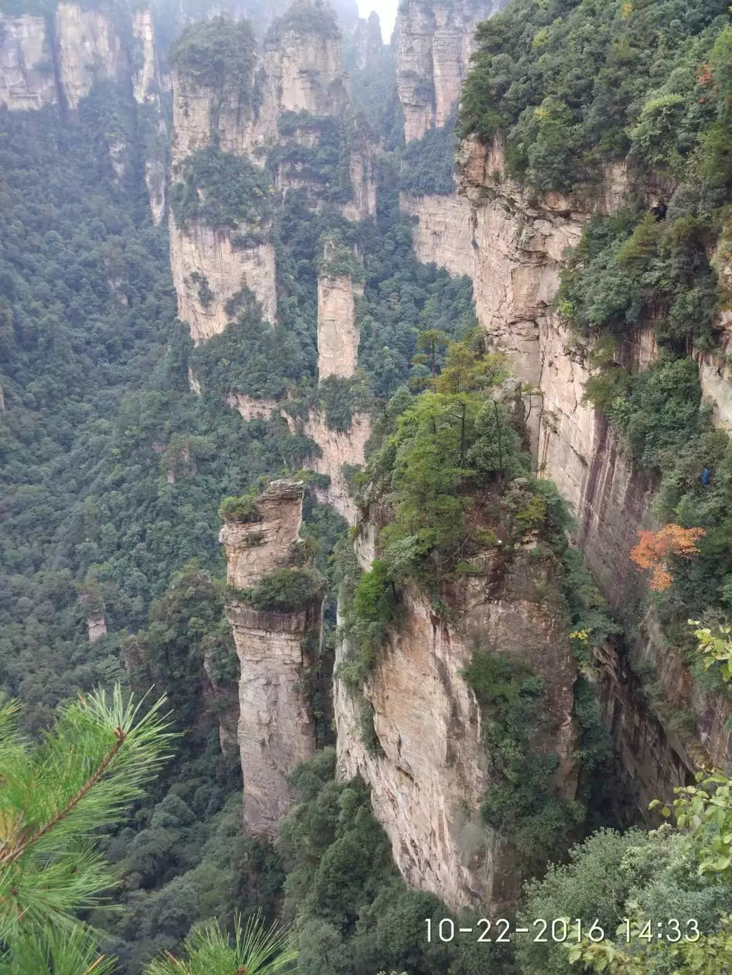 下午来到袁家界,则云开雾散,满目皆是如刀劈斧削过的姿态各异的仙山!其中最险峻的南天一柱就是美国大片《阿凡达》中悬浮山的来源。